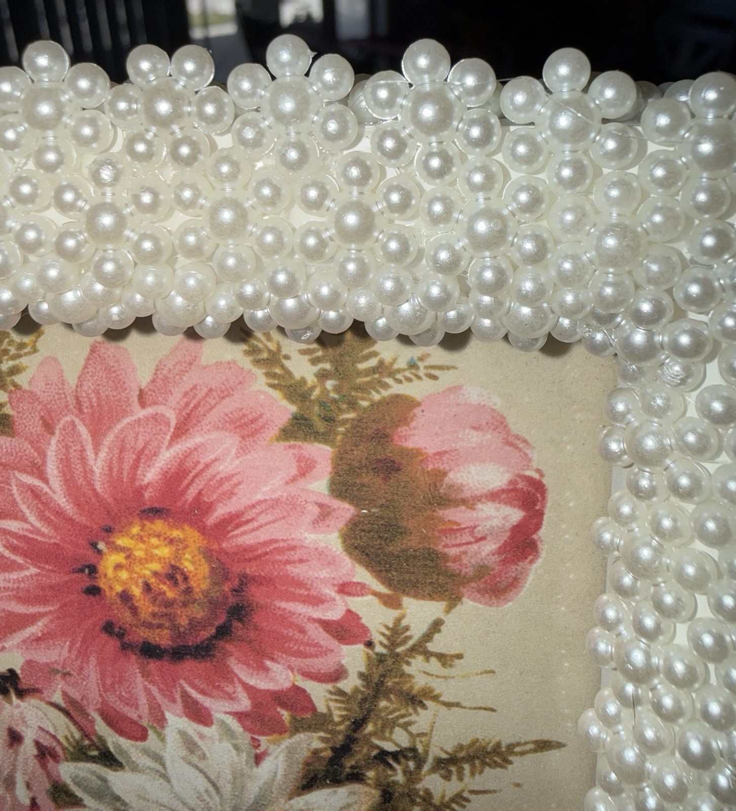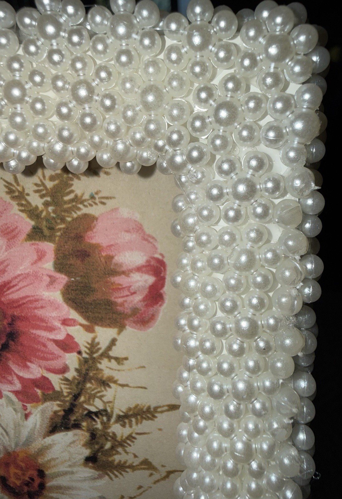 Hand Crafted Beautiful Faux Pearl Adorned Photo Picture Frame Holds 4 X 6