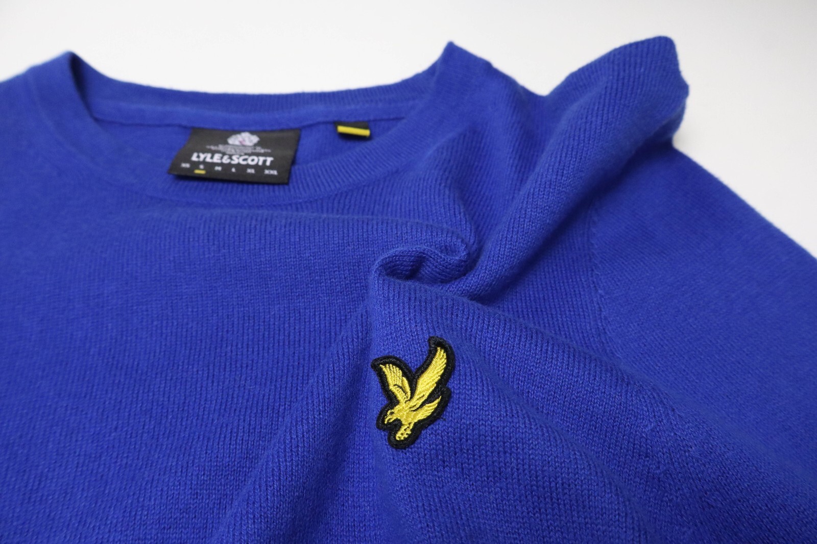 как выглядит LYLE SCOTT Jumper Mens SMALL Wool Blend Crew Neck Blue Logo Pullover фото