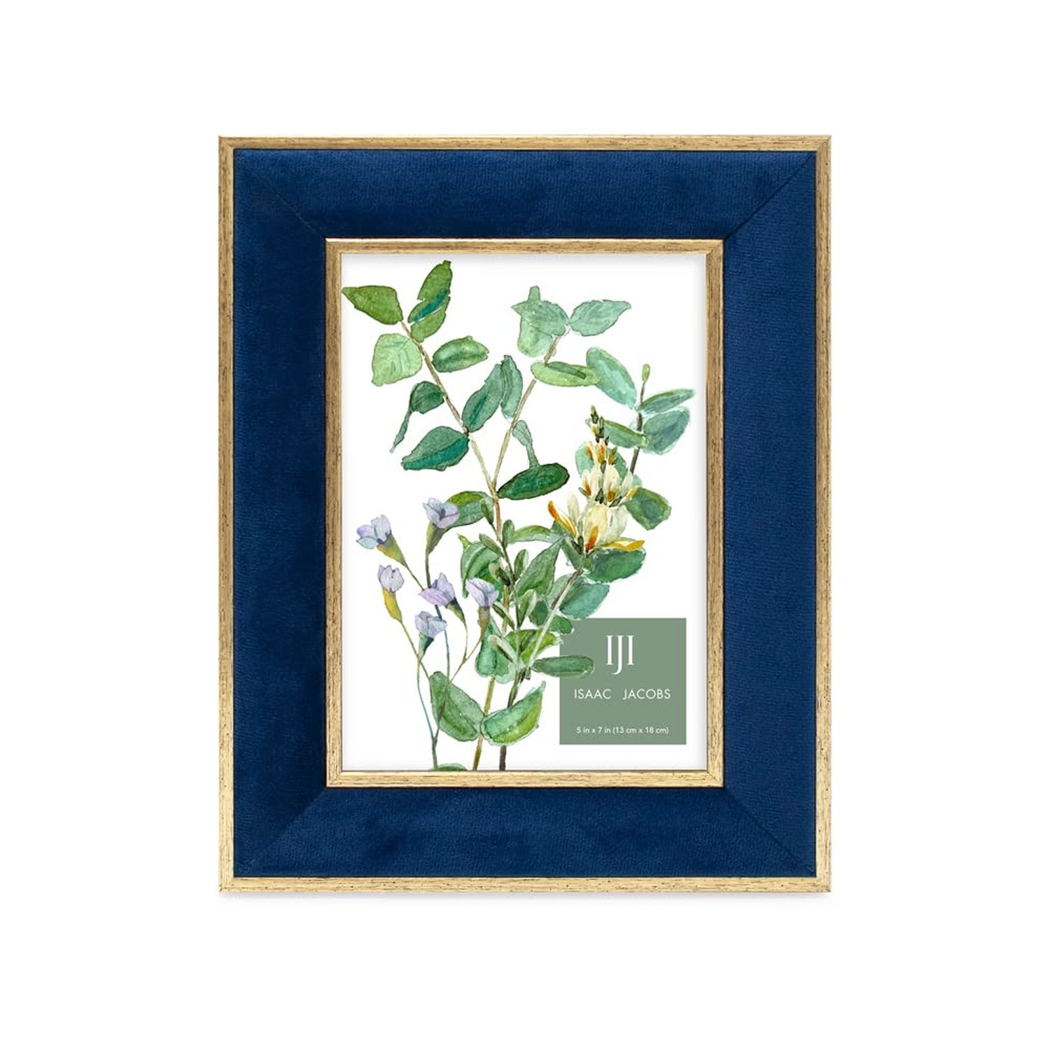 Isaac Jacobs 5x7 Navy Velvet Picture Frame with Metallic Gold Double Border, ...