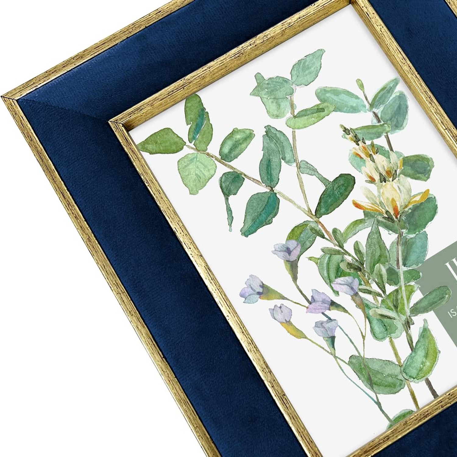 как выглядит Isaac Jacobs 5x7 Navy Velvet Picture Frame with Metallic Gold Double Border, ... фото