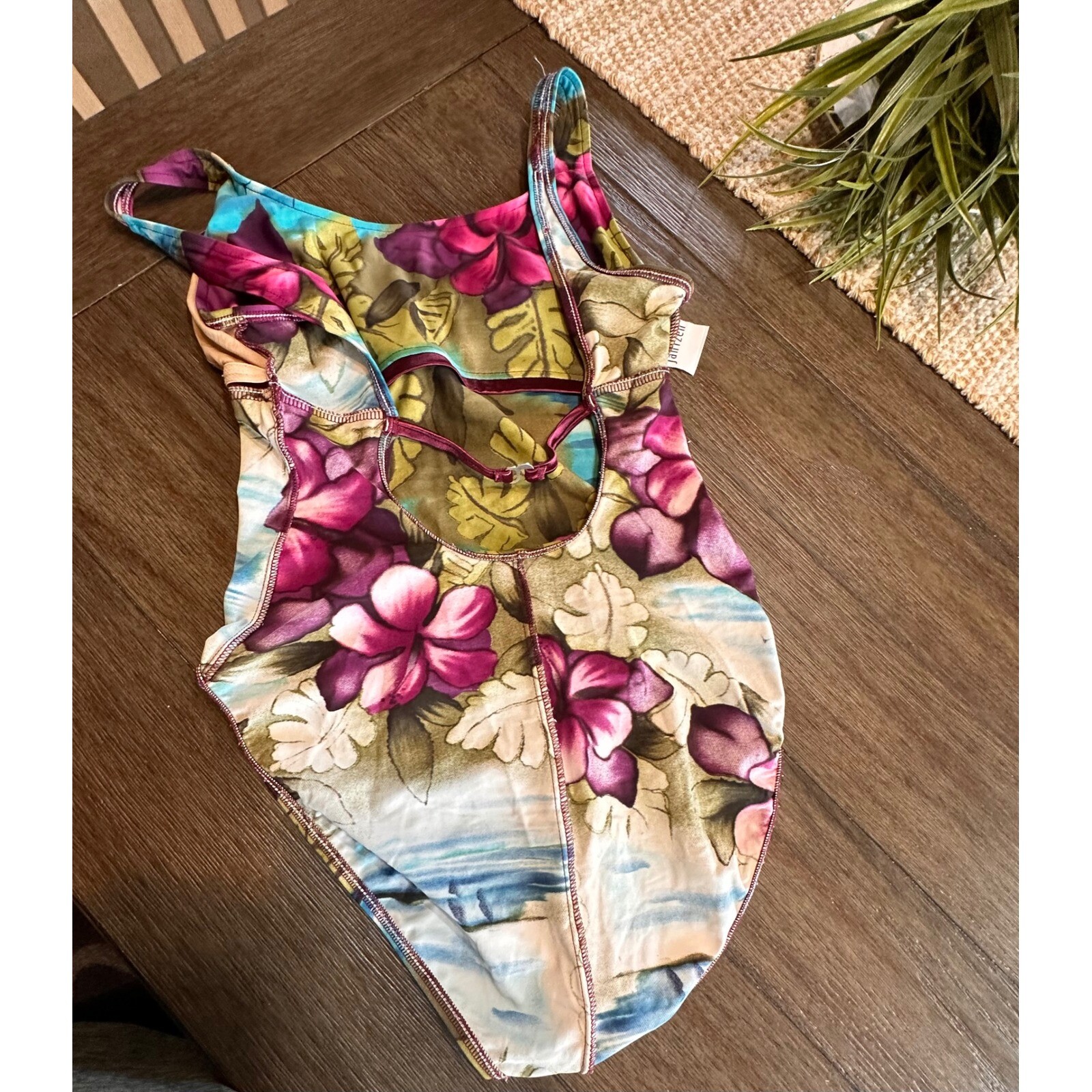 как выглядит VTG 90s Jantzen Floral One Piece Swimsuit Tropical Beach Swimwear Women L 12-14 фото