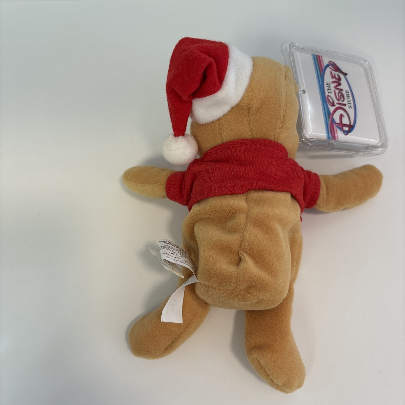 Disney Store Mini Bean Bag Plush Winnie The Pooh w Santa Hat 8 w Tags Christmas