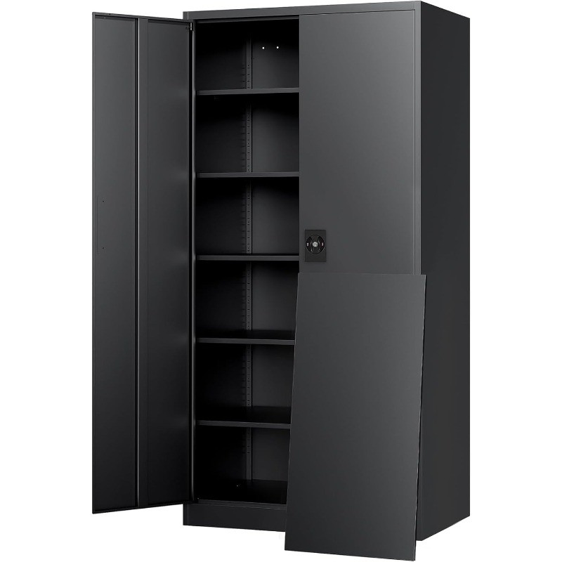 Metal Garage Storage Cabinet with Lock 71 Locking Tool Cabinet 2 Doors 5 Shelve