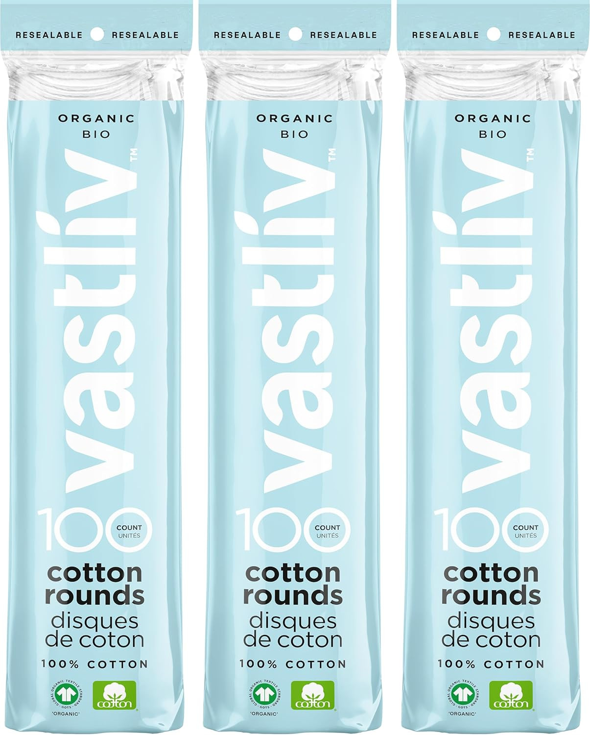 Organic Cotton Rounds 300 Count Makeup Remover Pads, Hypoallergenic, Lint-Free