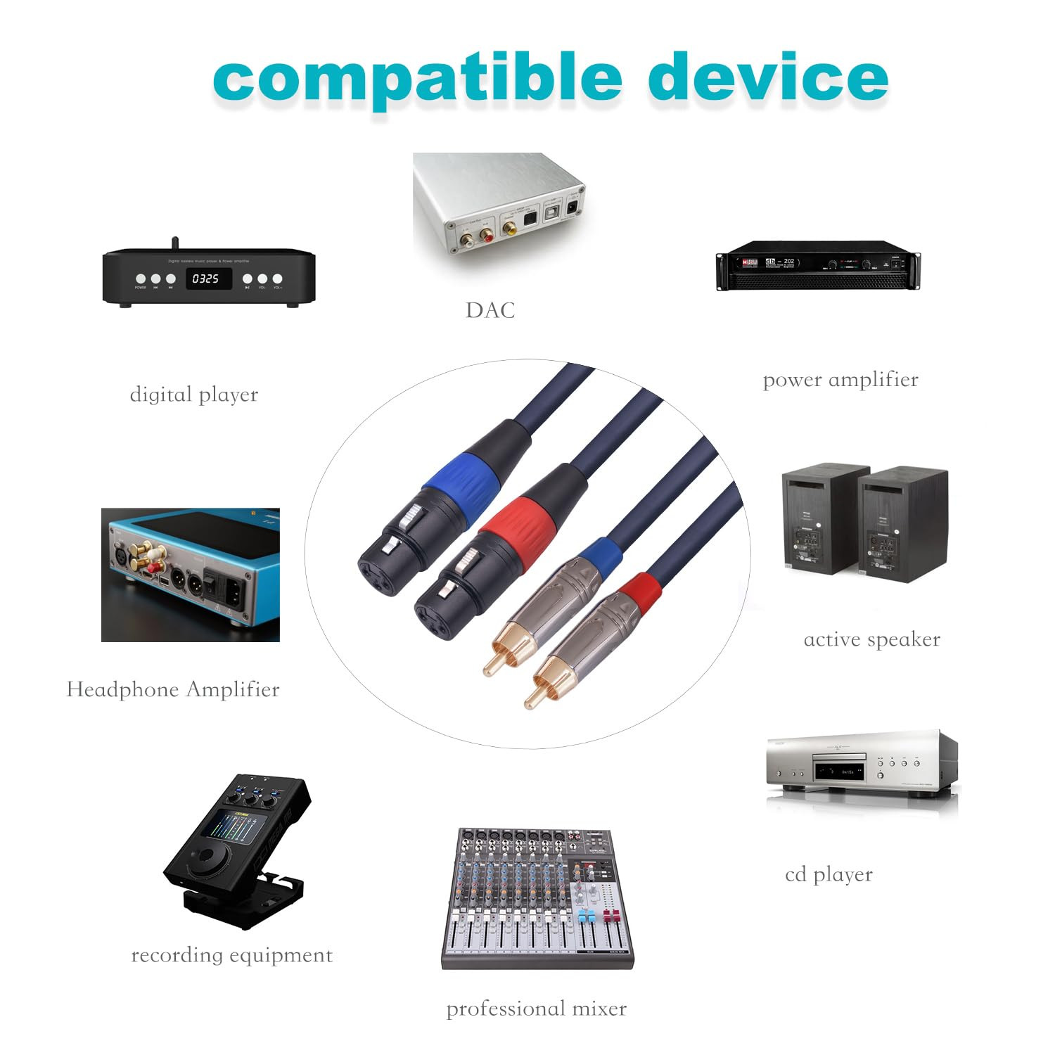 XLR to RCA Cable - 2 XLR Female to 2 RCA Male, HiFi Audio Cable with 4N OFC Wire