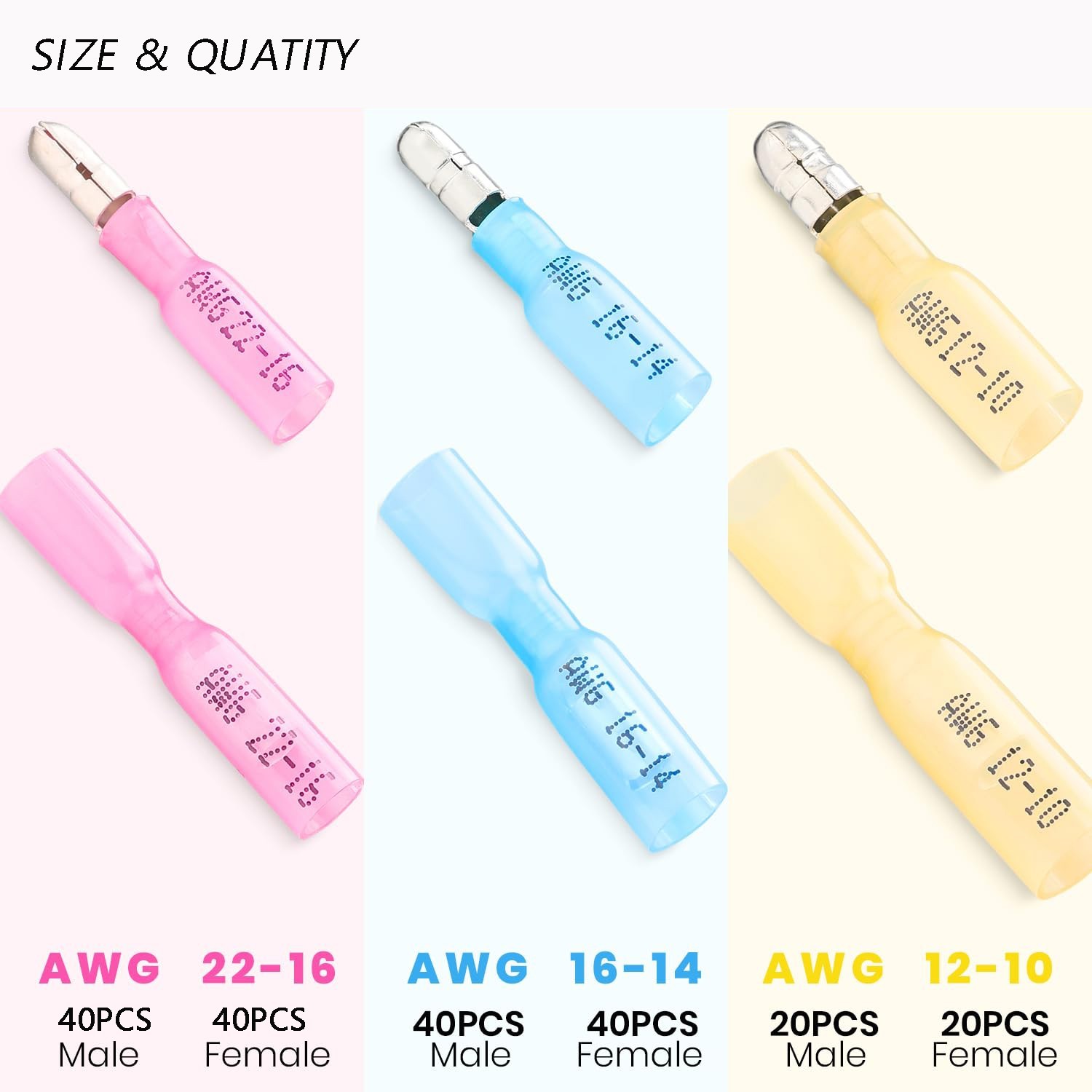200PCS Waterproof Female Male Butt Wire Heat Shrink Bullet Connectors Crimp kits