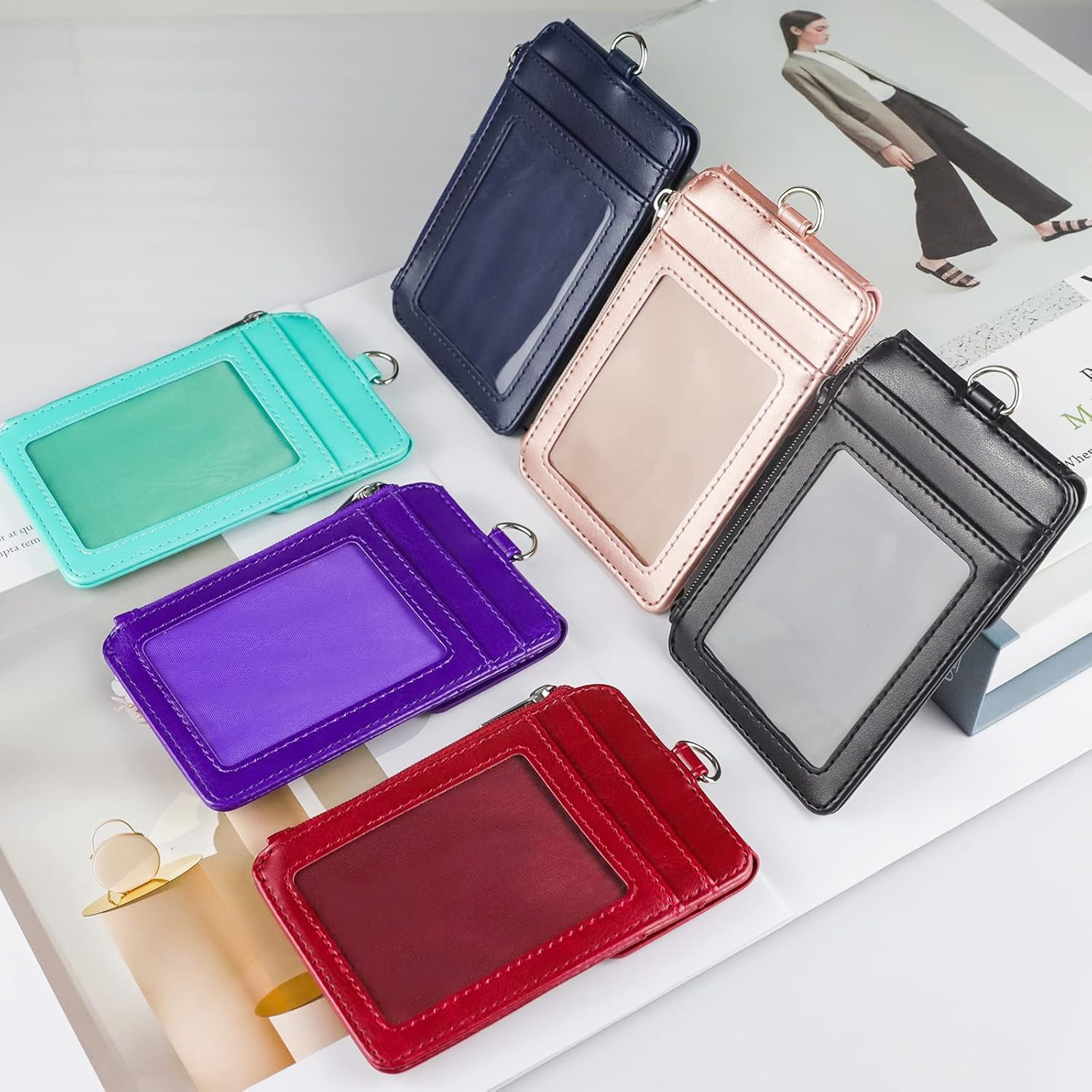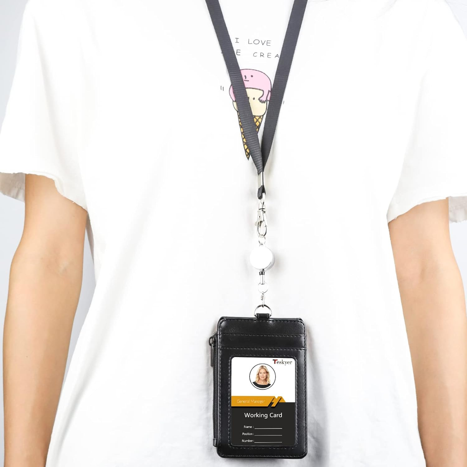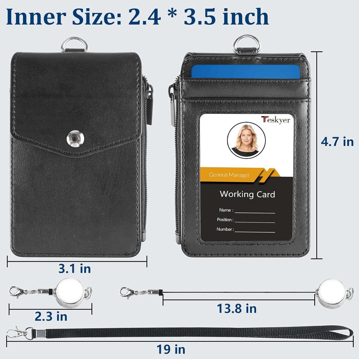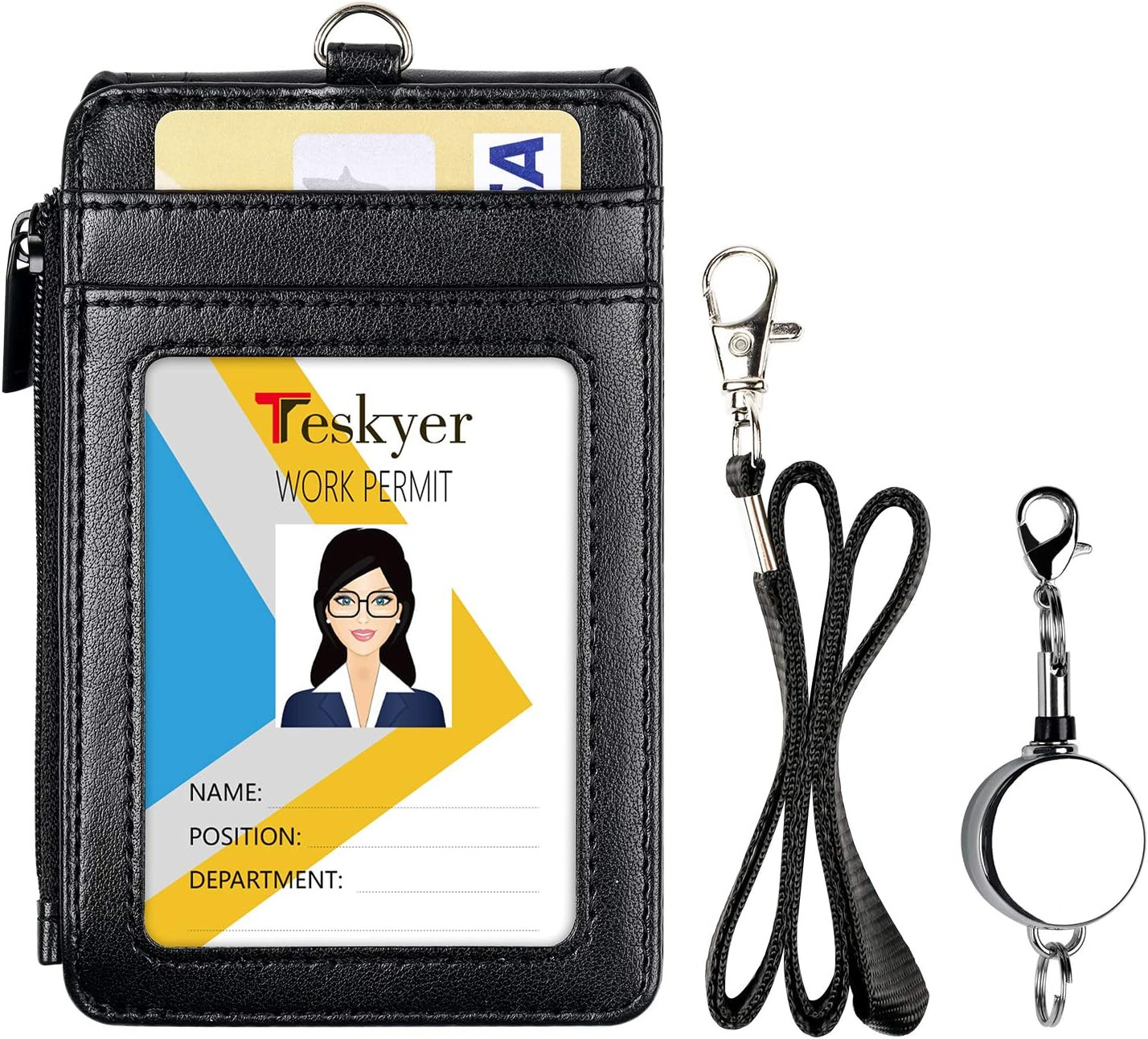 Teskyer Leather Badge Holder with Lanyard and Retractable Badge Reel, 4 Card Slo