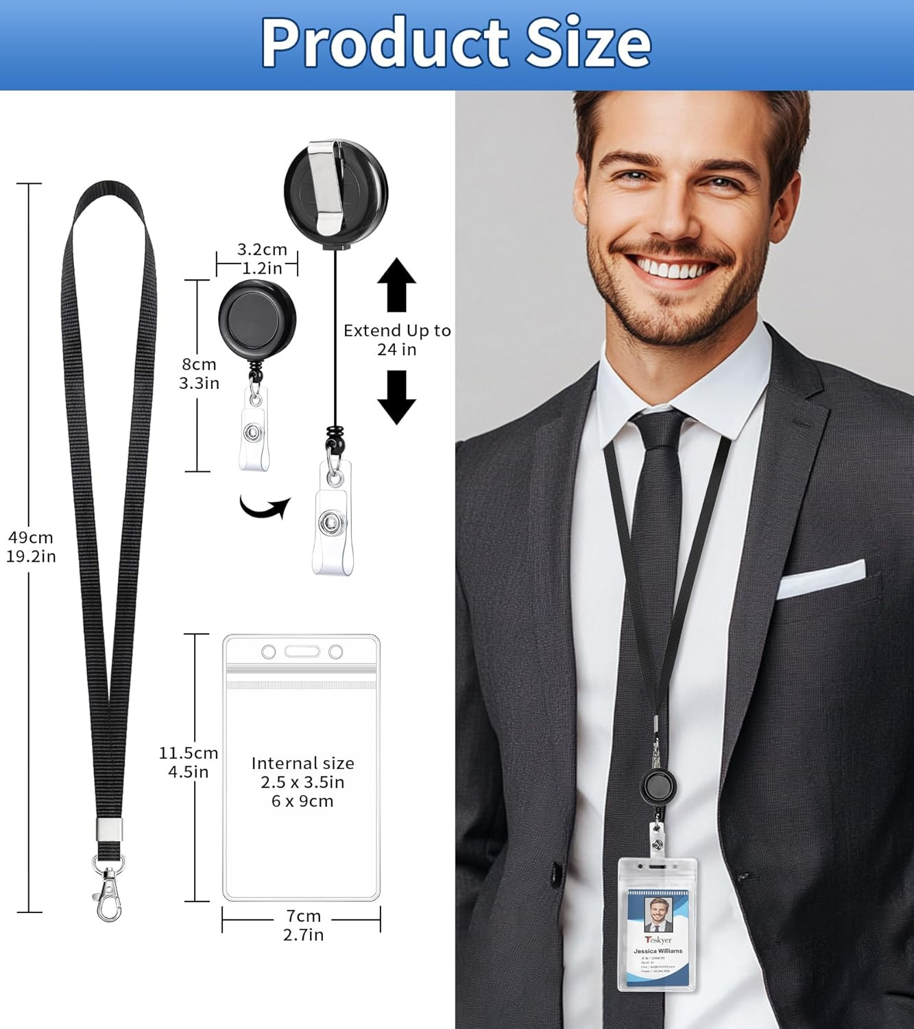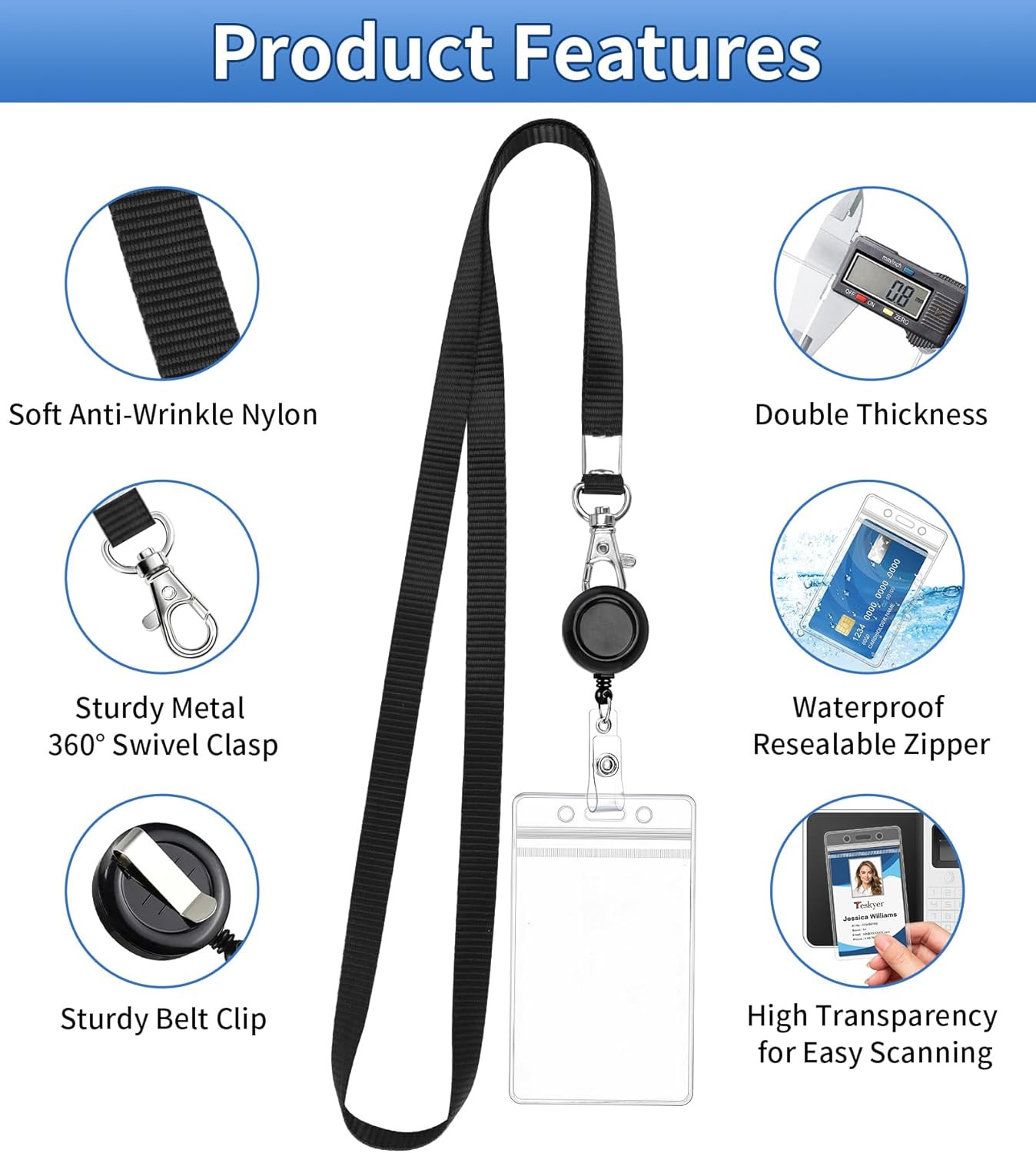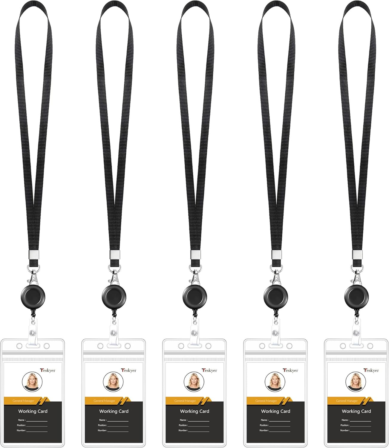 Teskyer 5 Pack Retractable Lanyards for ID Badges, Thick Clear Plastic ID Badge