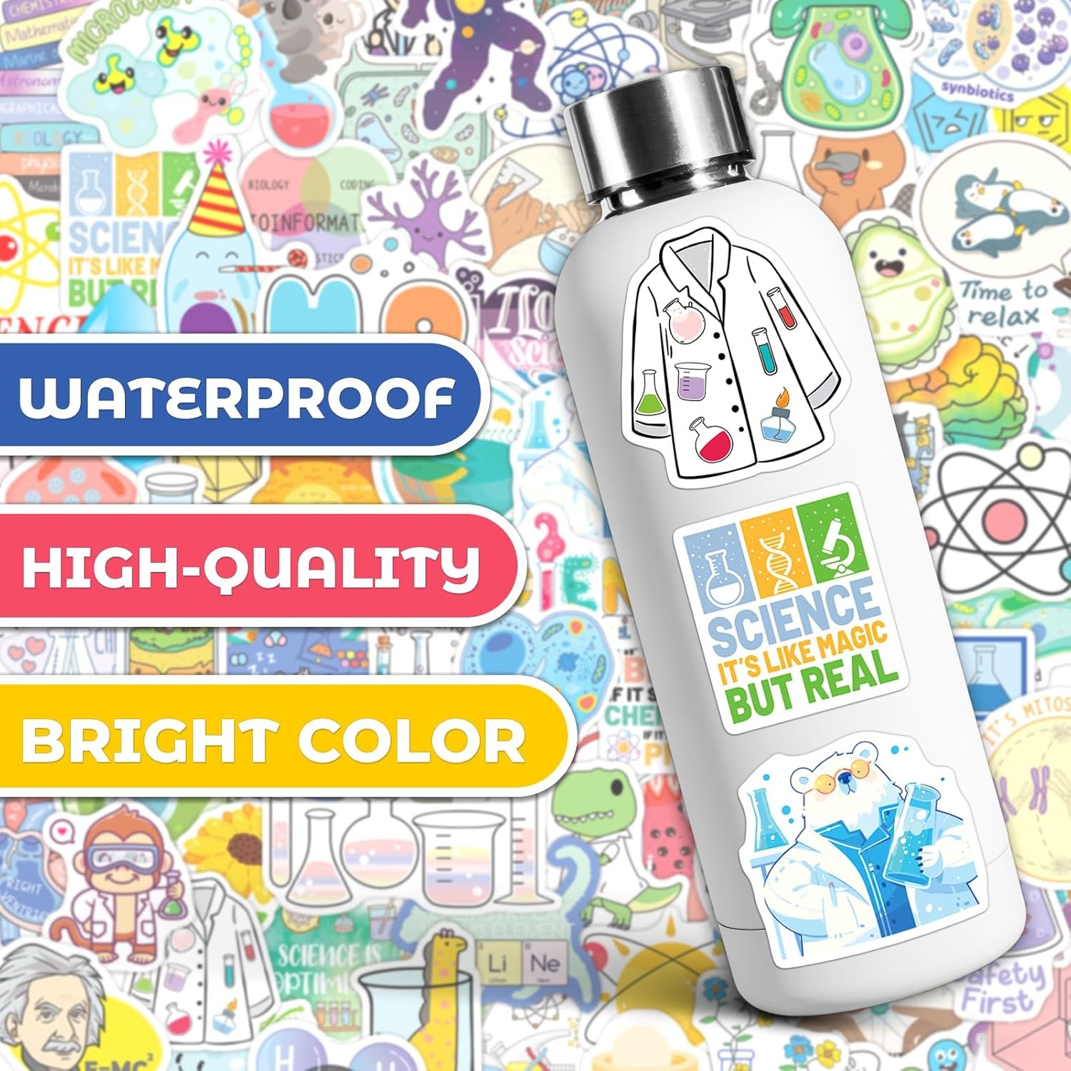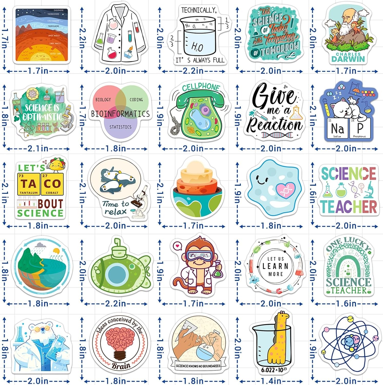 как выглядит 200 PCS Science Stickers Pack Educational Chemistry Biology Physics Colorful фото