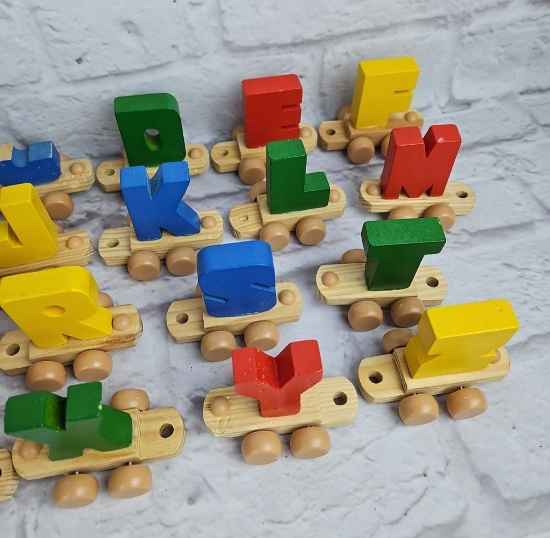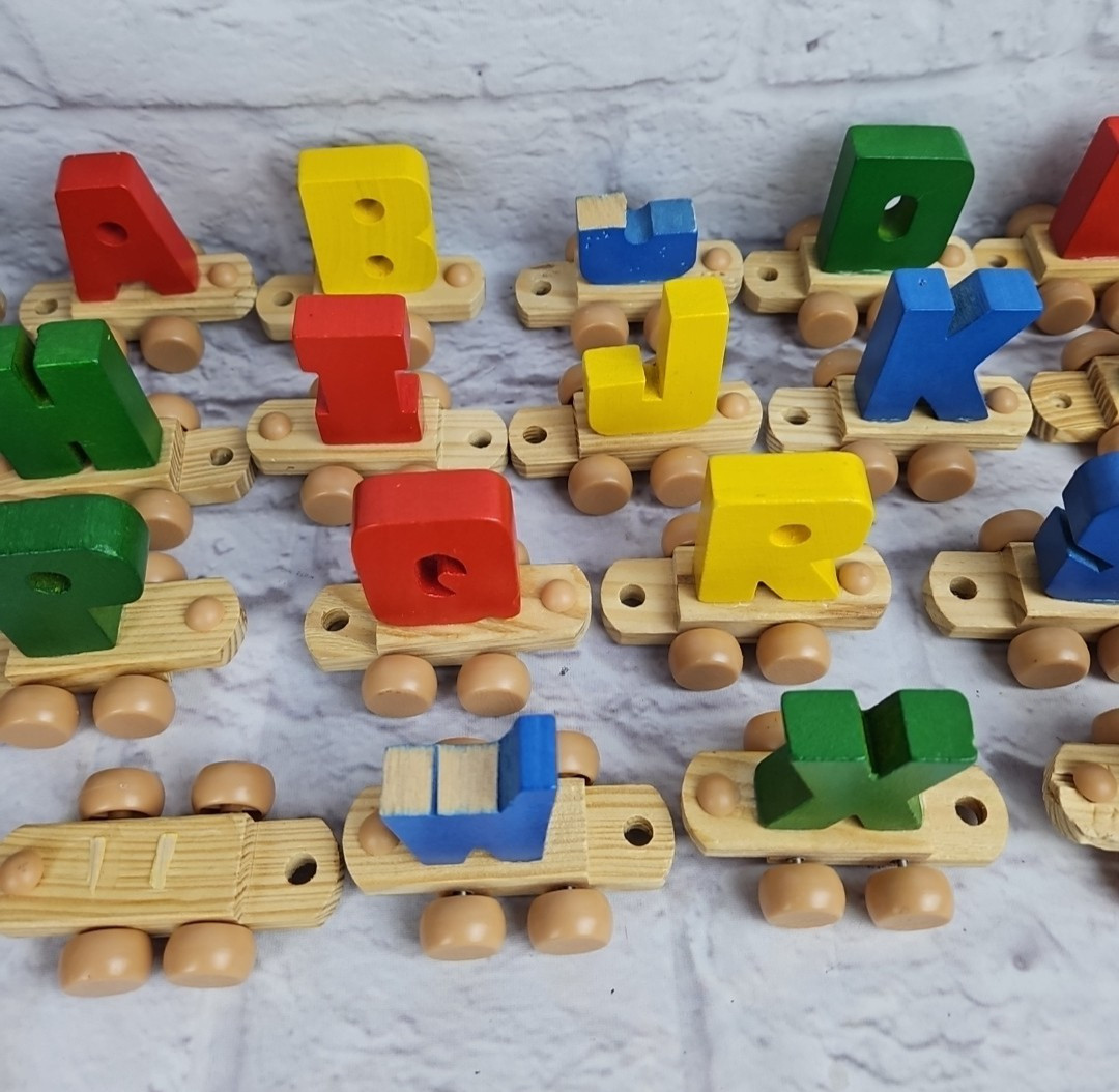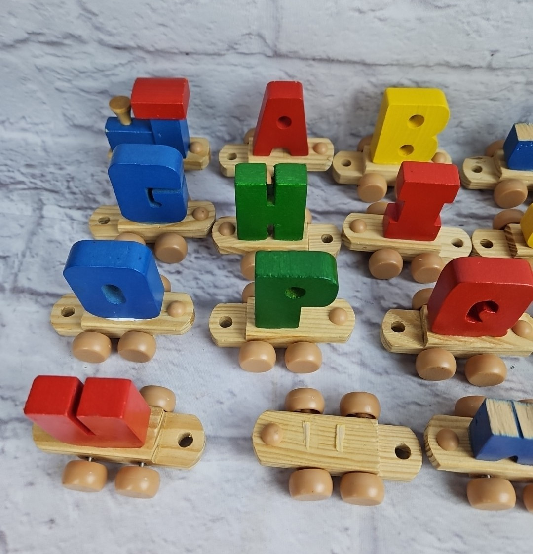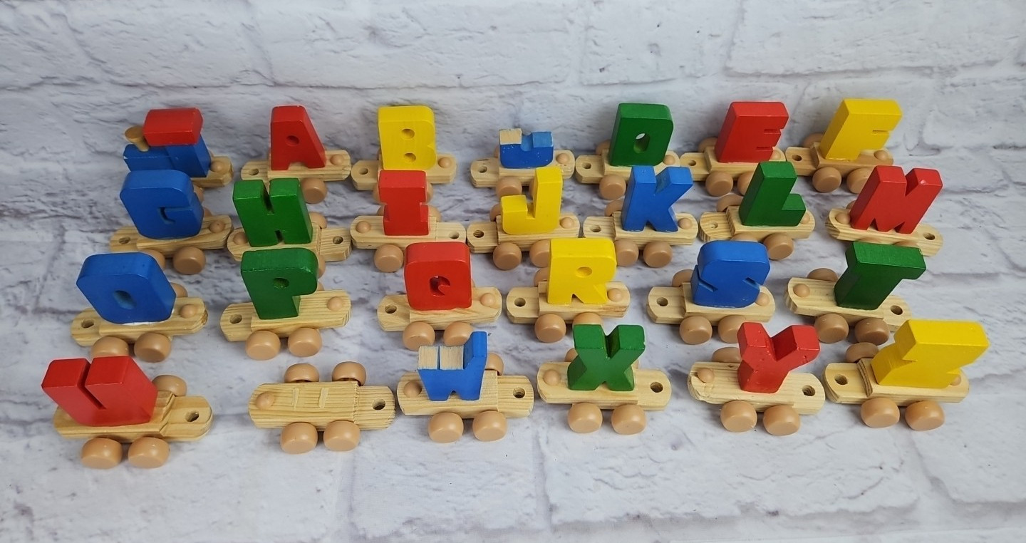 как выглядит Vintage Wooden Alphabet Train Primary Colors Please Read фото