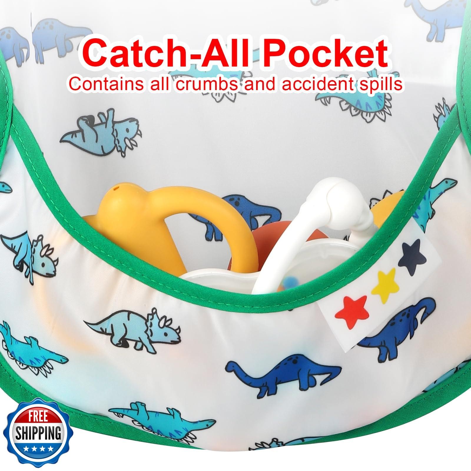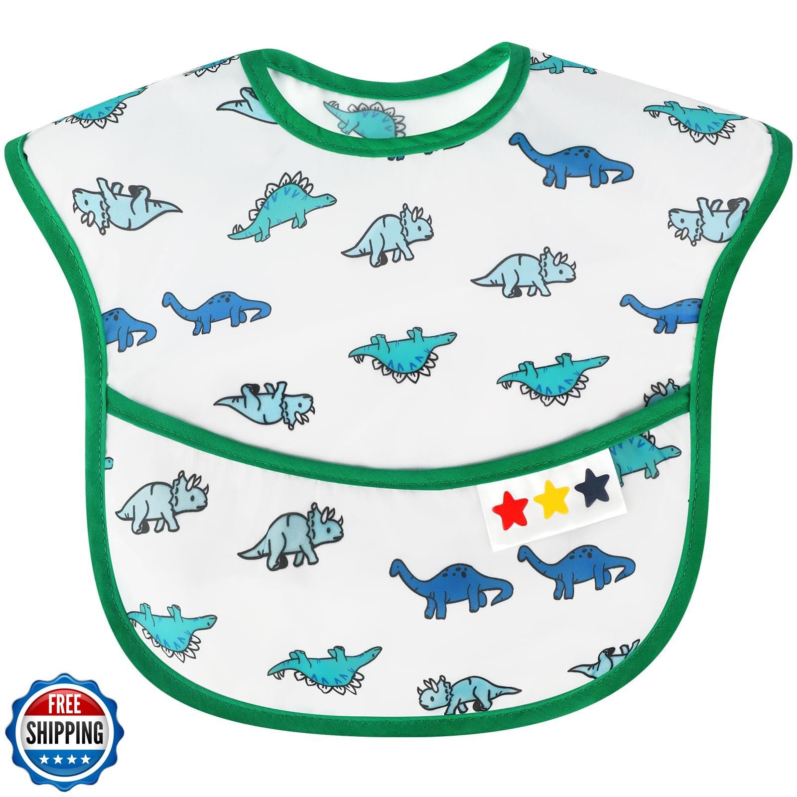 Accmor Baby Bibs, 4 Pack Waterproof Baby Toddler Bibs, Apron Smock Bib for Ba