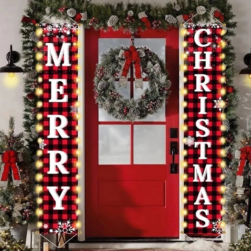 Christmas Decorations Outdoor Yard, Outside Front Porch Sign Set with Lights, Re