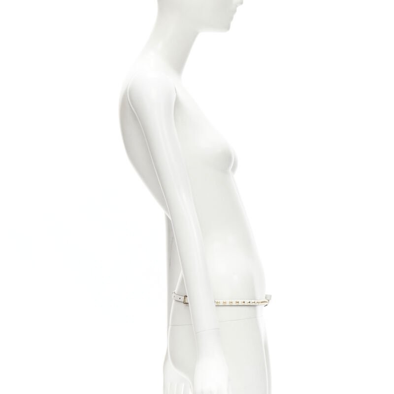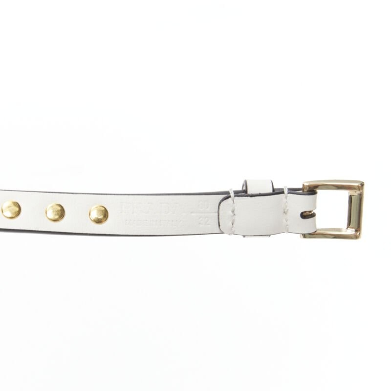 PRADA white leather bow gold punk stud skinny belt 1CC338 80cm 32