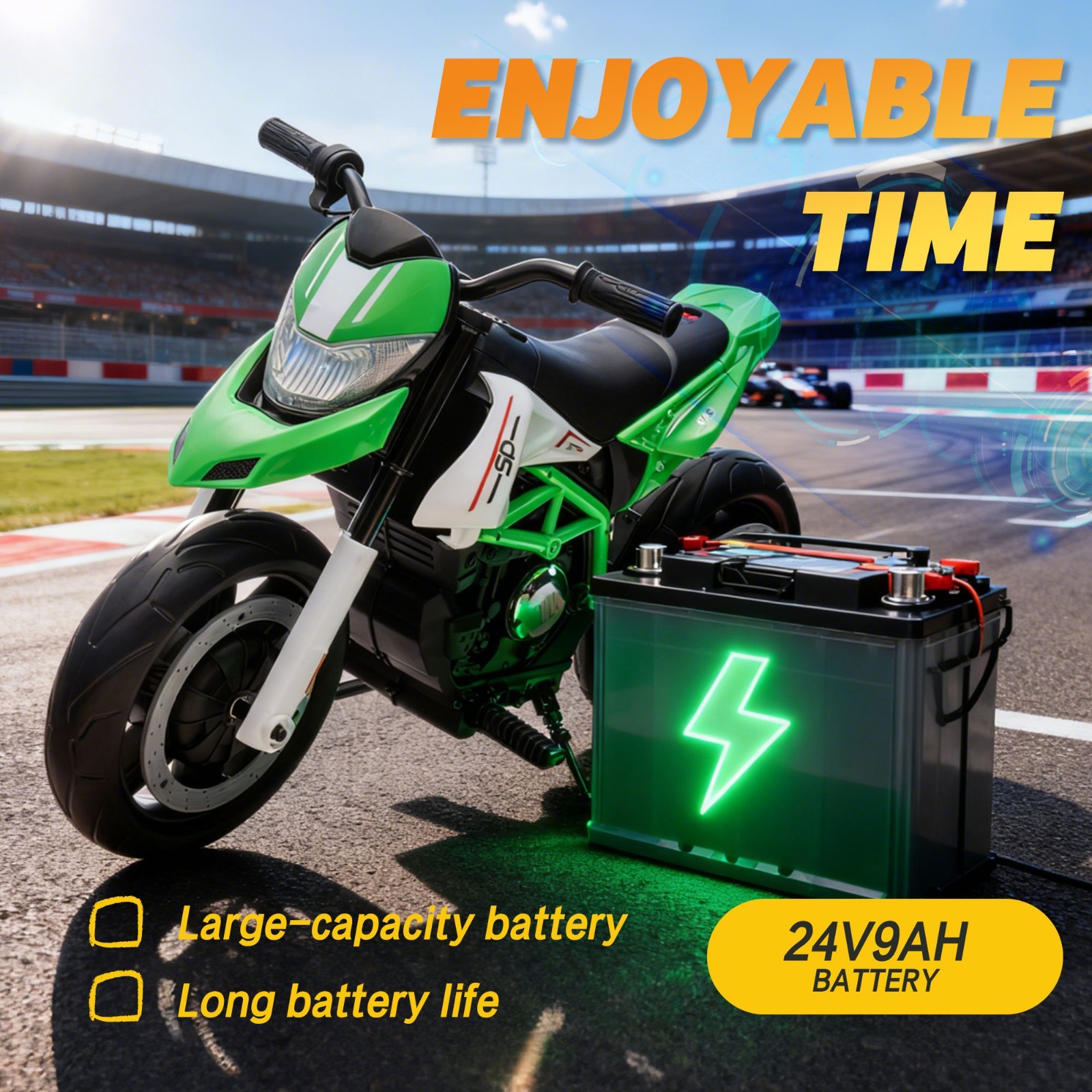 24V Kids Electric Motorcycle Ride On Toys Electric Bike for age 8 , Green