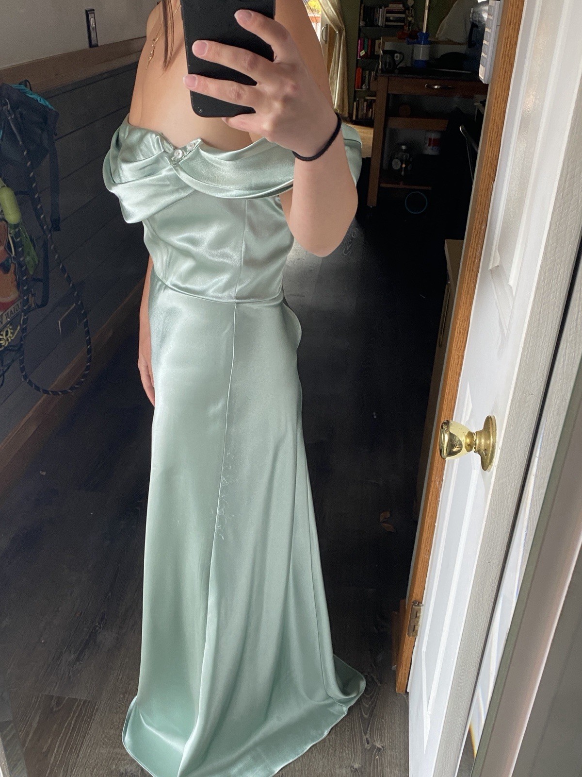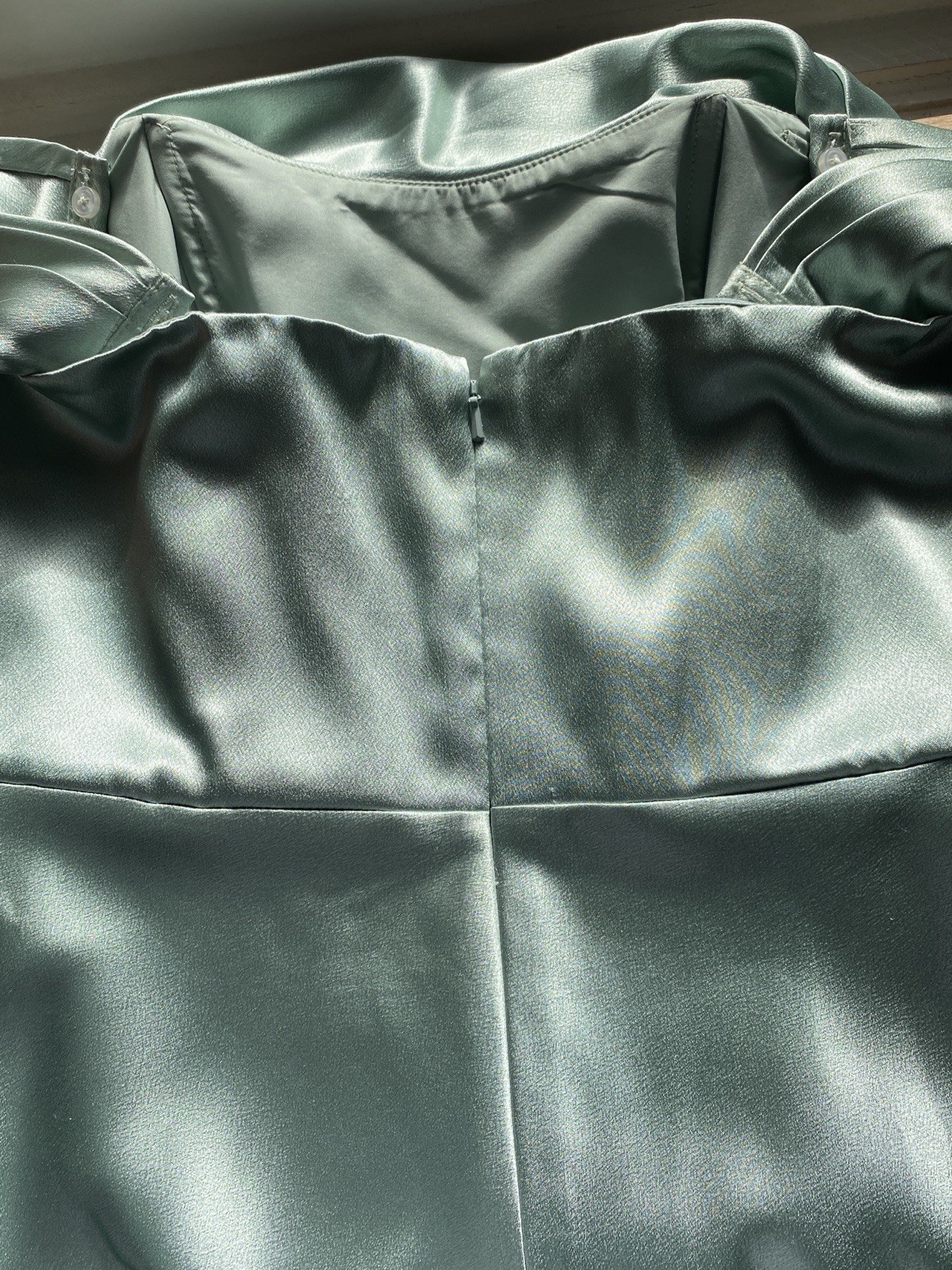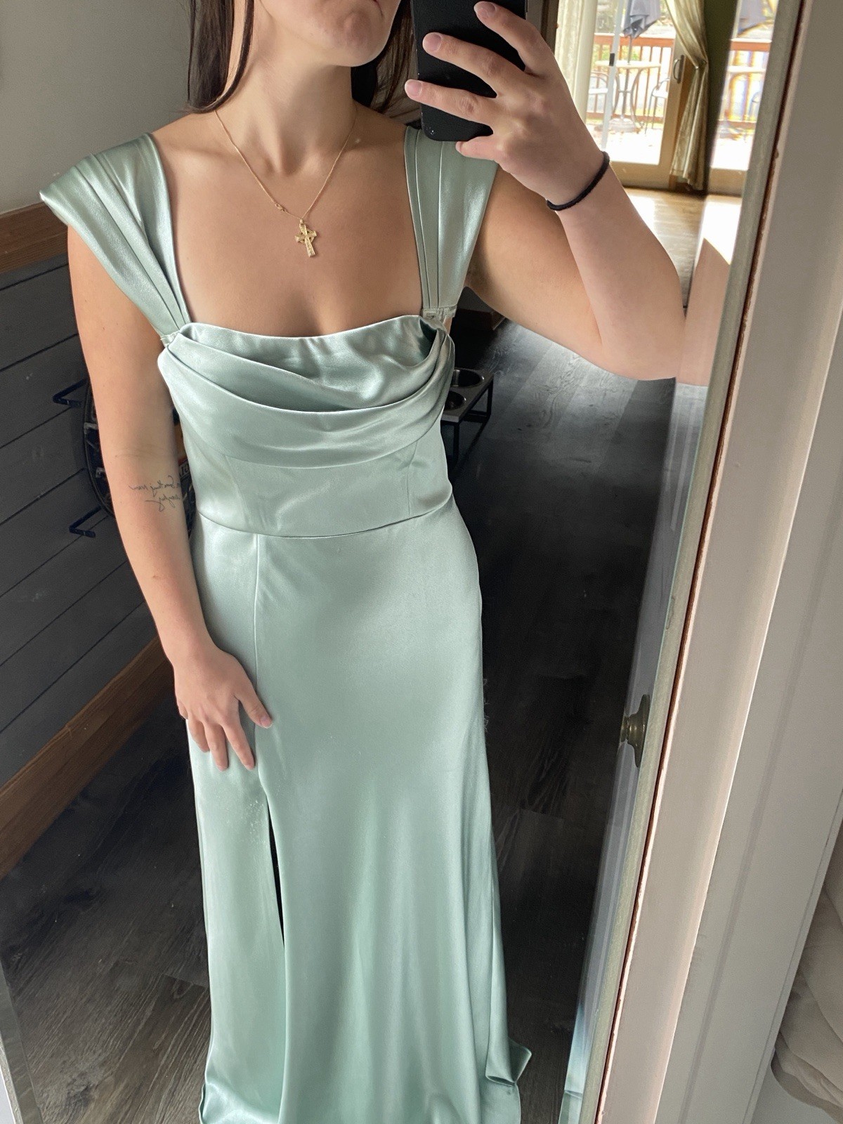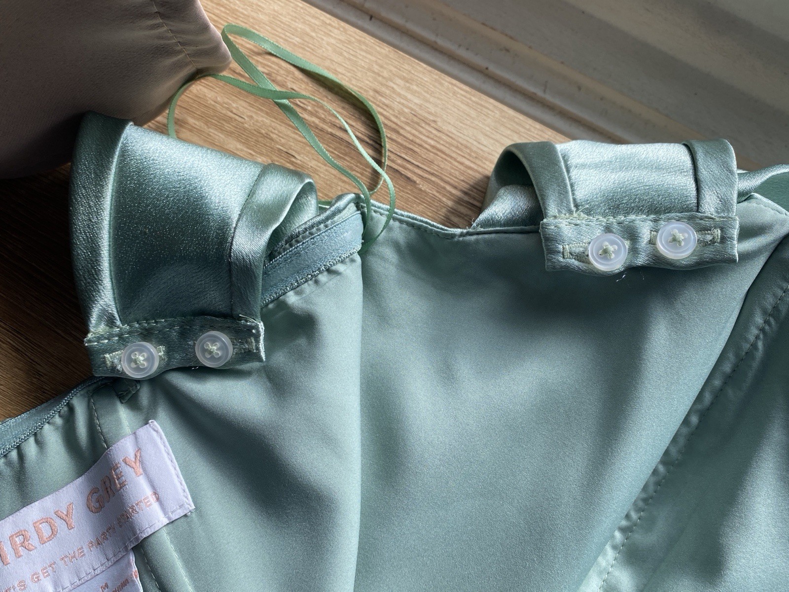 как выглядит Birdy Grey Sage Green Satin Convertible Bridesmaid Dress фото