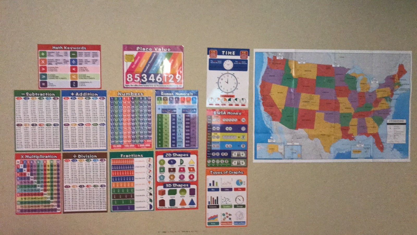 Durable 13 Pack Math Posters for Kids - Perfect for Homeschooling Classrooms