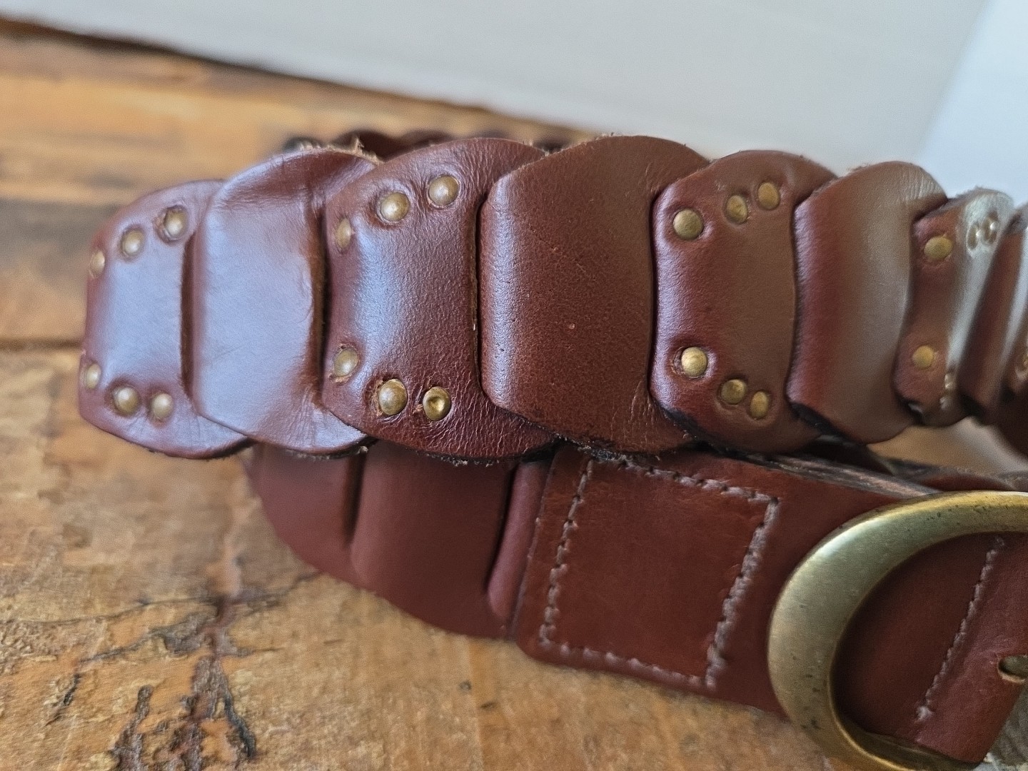 как выглядит Vintage Womans Brown Genuine Leather Belt Brass Accents Y2K SM фото
