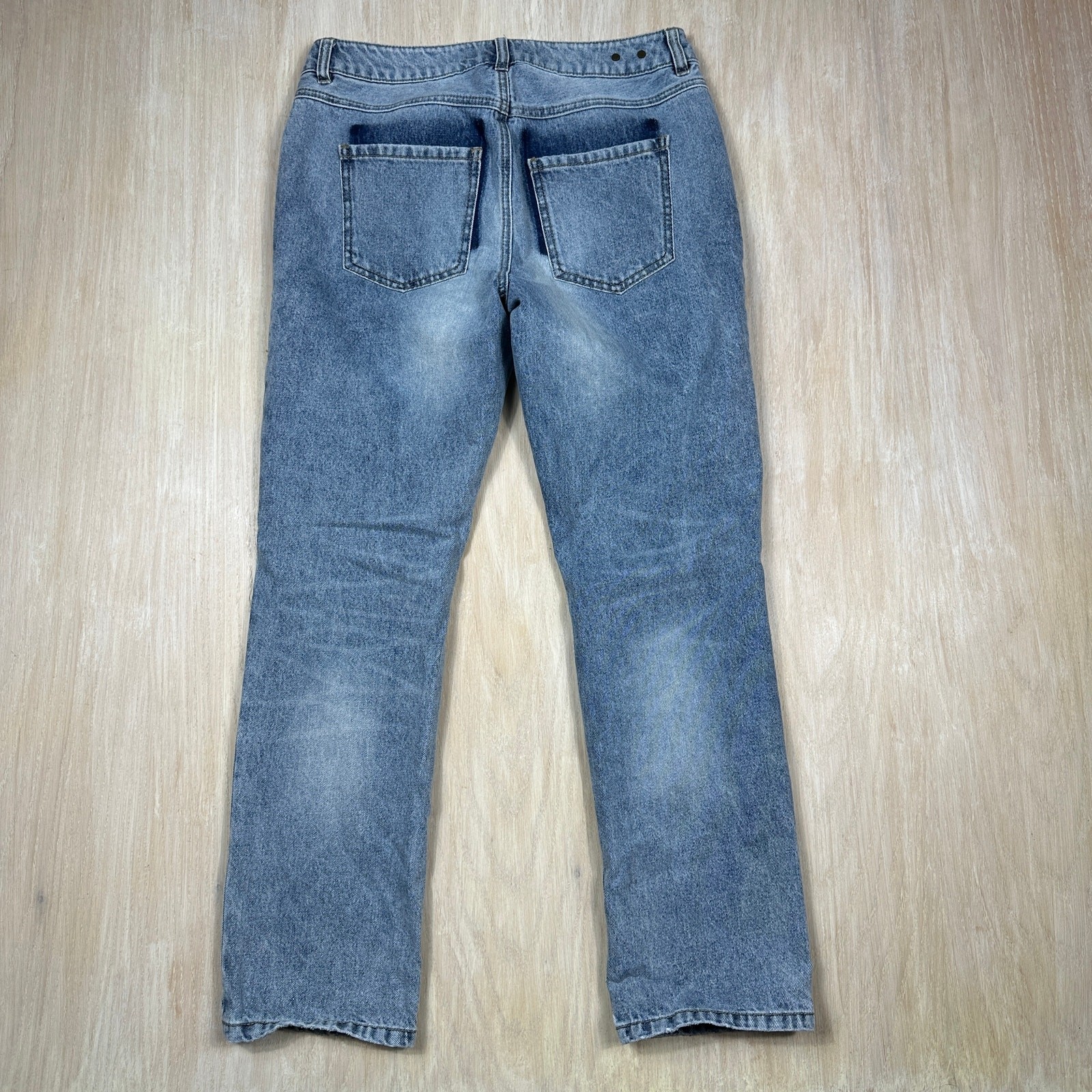 как выглядит Cabi Light Wash 100 Cotton Straight Leg Distressed Casual Blue Denim Jeans 4 фото