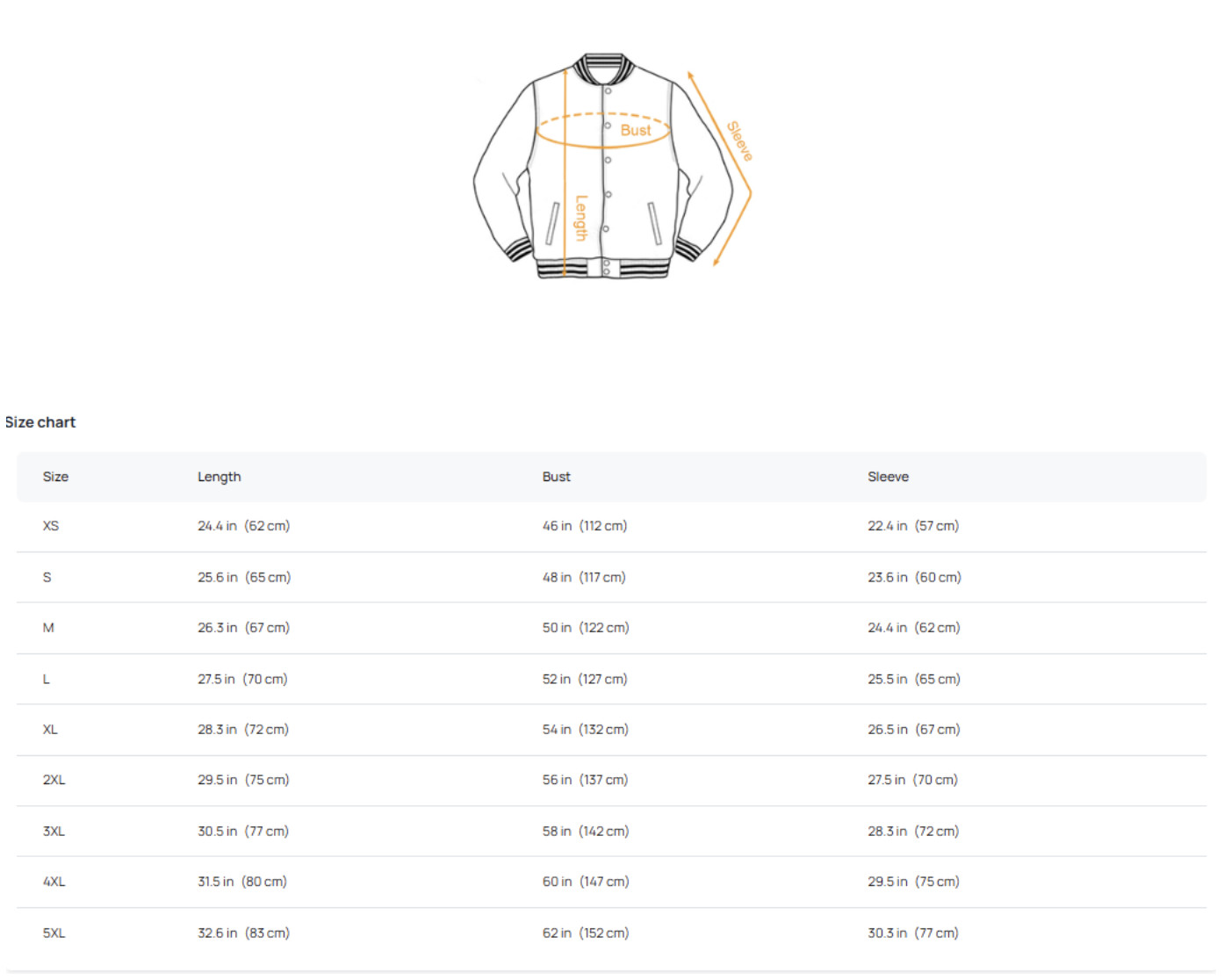 Размер: XS, S, M, L, XL, 2XL, 3XL, 4XL, 5XL, 6XL