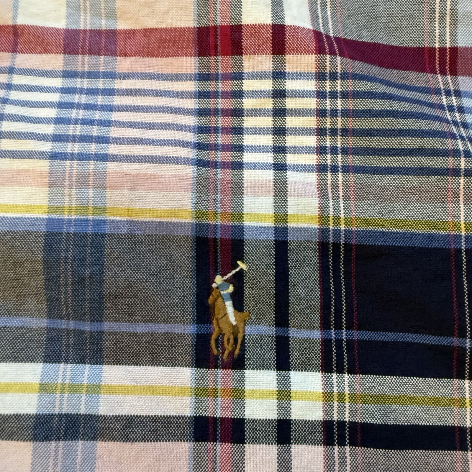 Ralph Lauren Plaid Oxford Shirt Long Sleeve Flesh Pony Men s 4XB