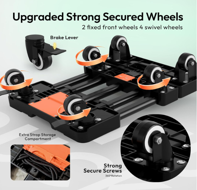 Folding Hand Truck 500lbs, 6-Wheel Heavy Duty Dolly Cart w/2 Ropes, Portable