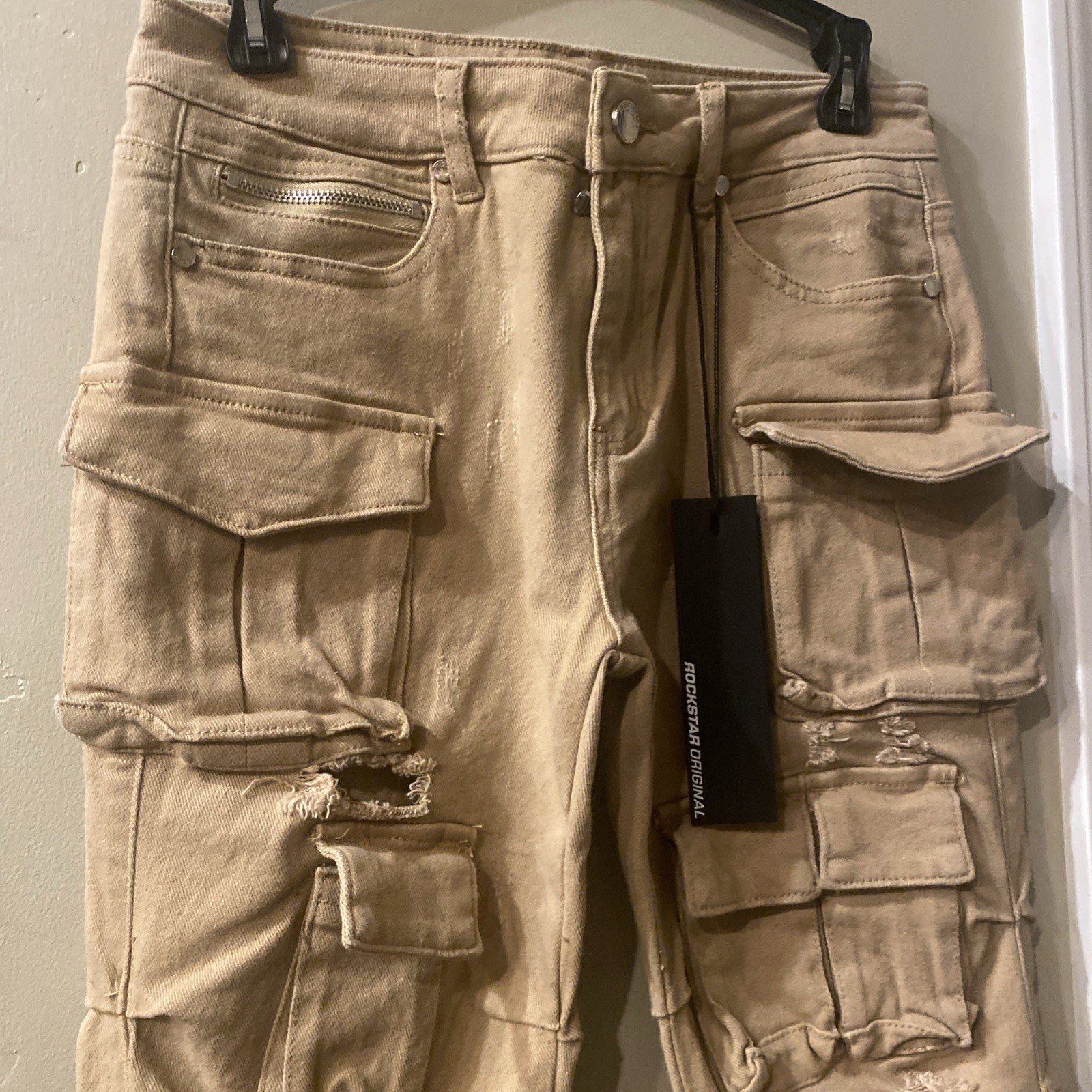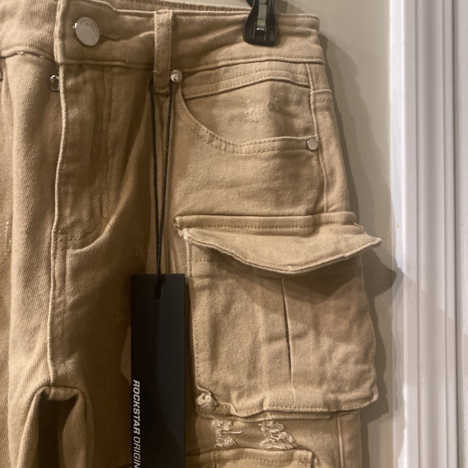 как выглядит Rockstar Original Gentry Beige Stacked Flare Jeans Boys 16 Distressed Cargo 150 фото