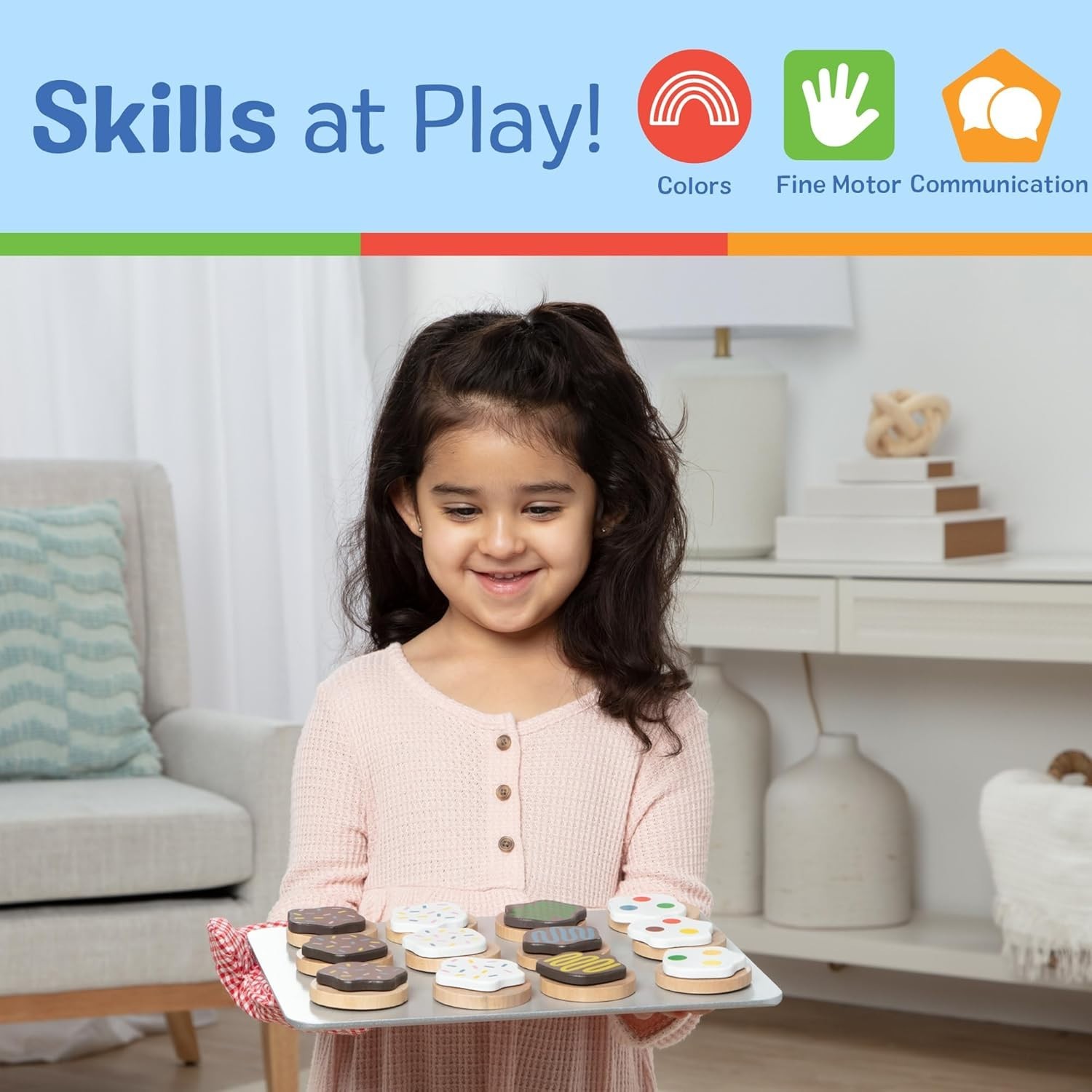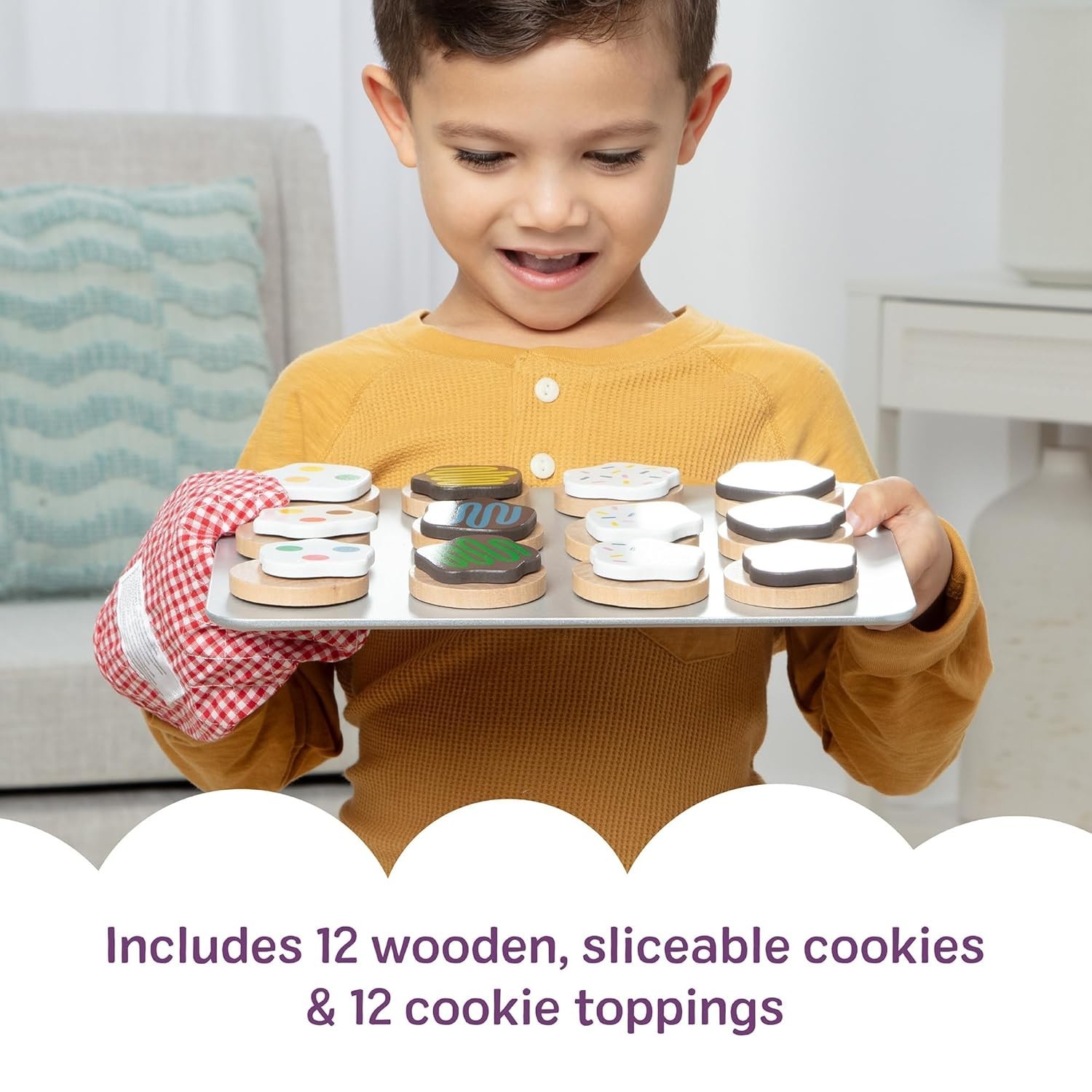 Wooden Slice and Bake Cookie Play Set with Toppings Baking Kit for Kids
