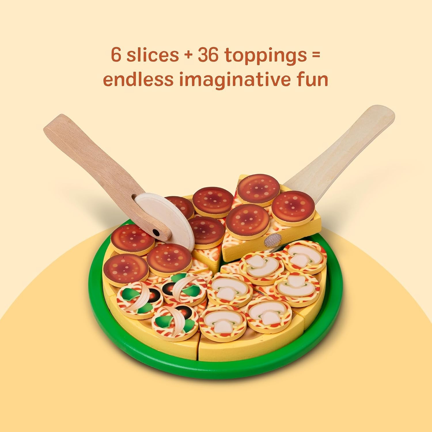 Wooden Pizza Play Set with 36 Toppings and Accessories for Kids 3