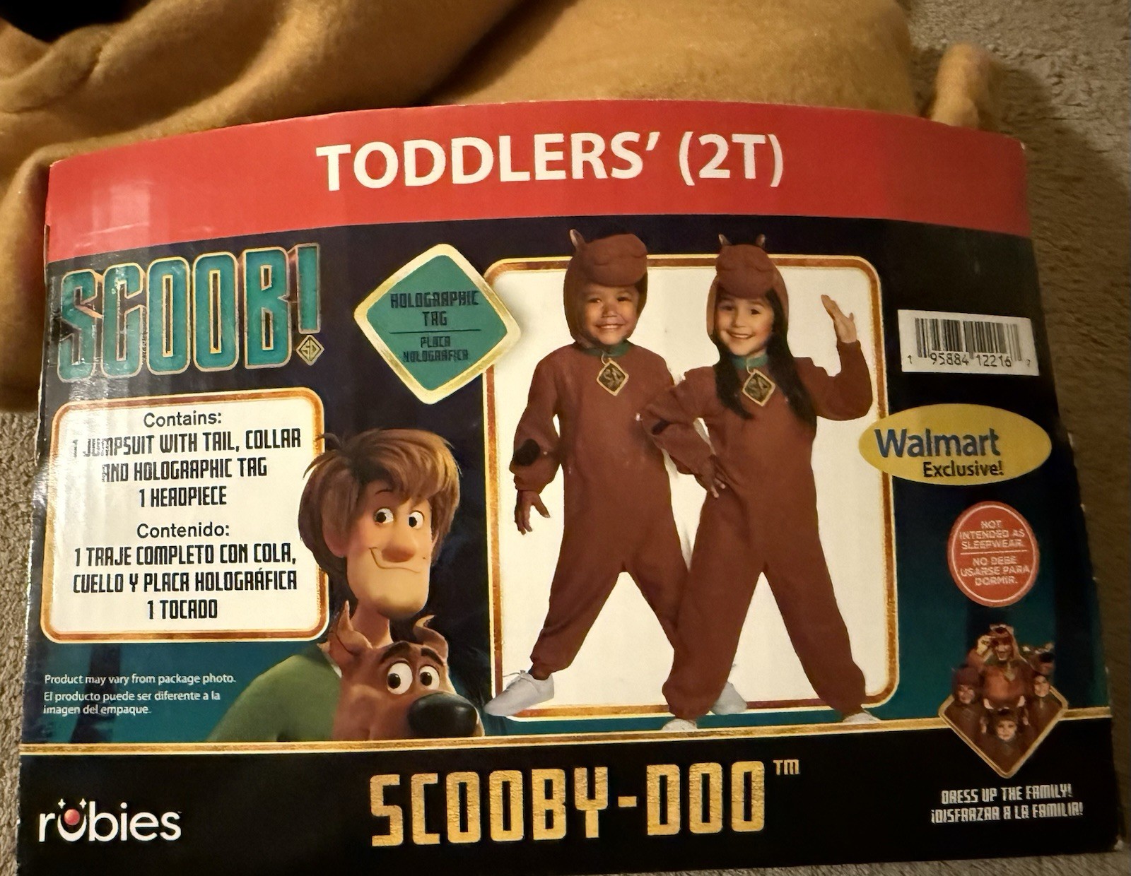 Scooby-Doo Toddler Costume 2T With Holographic Tag Headpiece Walmart Exclusive