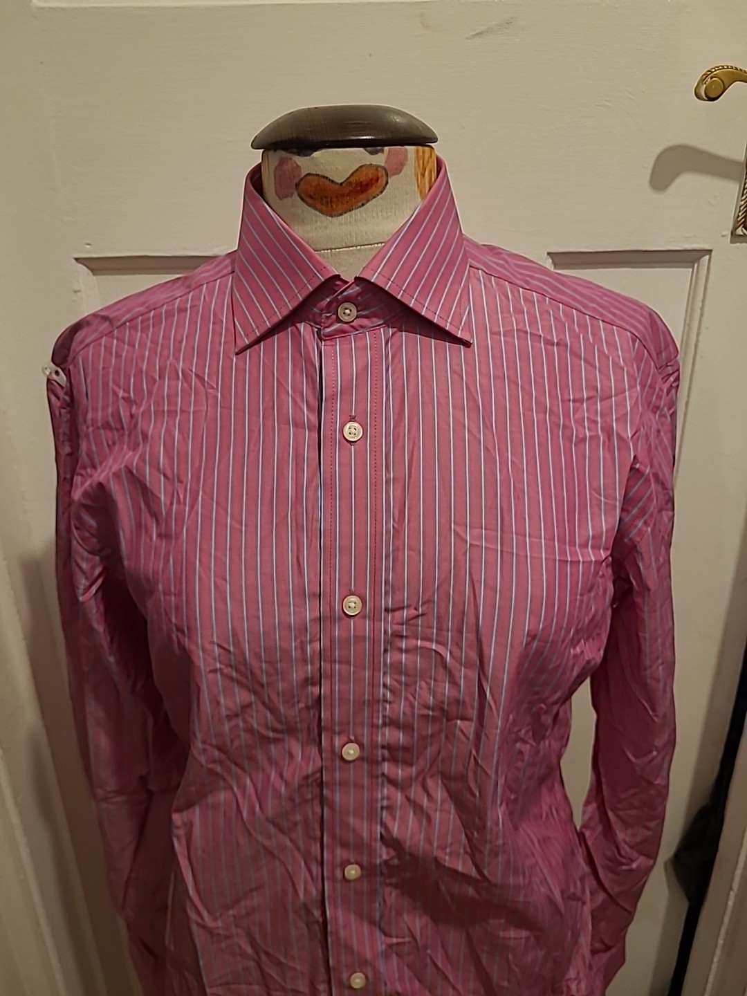 как выглядит Mens Next Size 15" Pink Blue Striped Long Sleeved Shirt фото