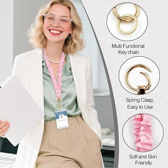 Stretchy Scrunchie Lanyard for ID Badges and Keys, Cute Stretchy Teacher Lanyard