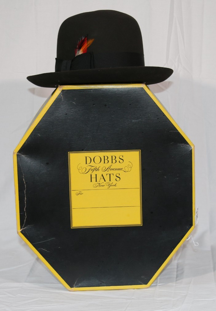 Vintage DOBBS Fifth Avenue Black Bowler Derby Hat Original Box 6 7/8 SKU HAT 01