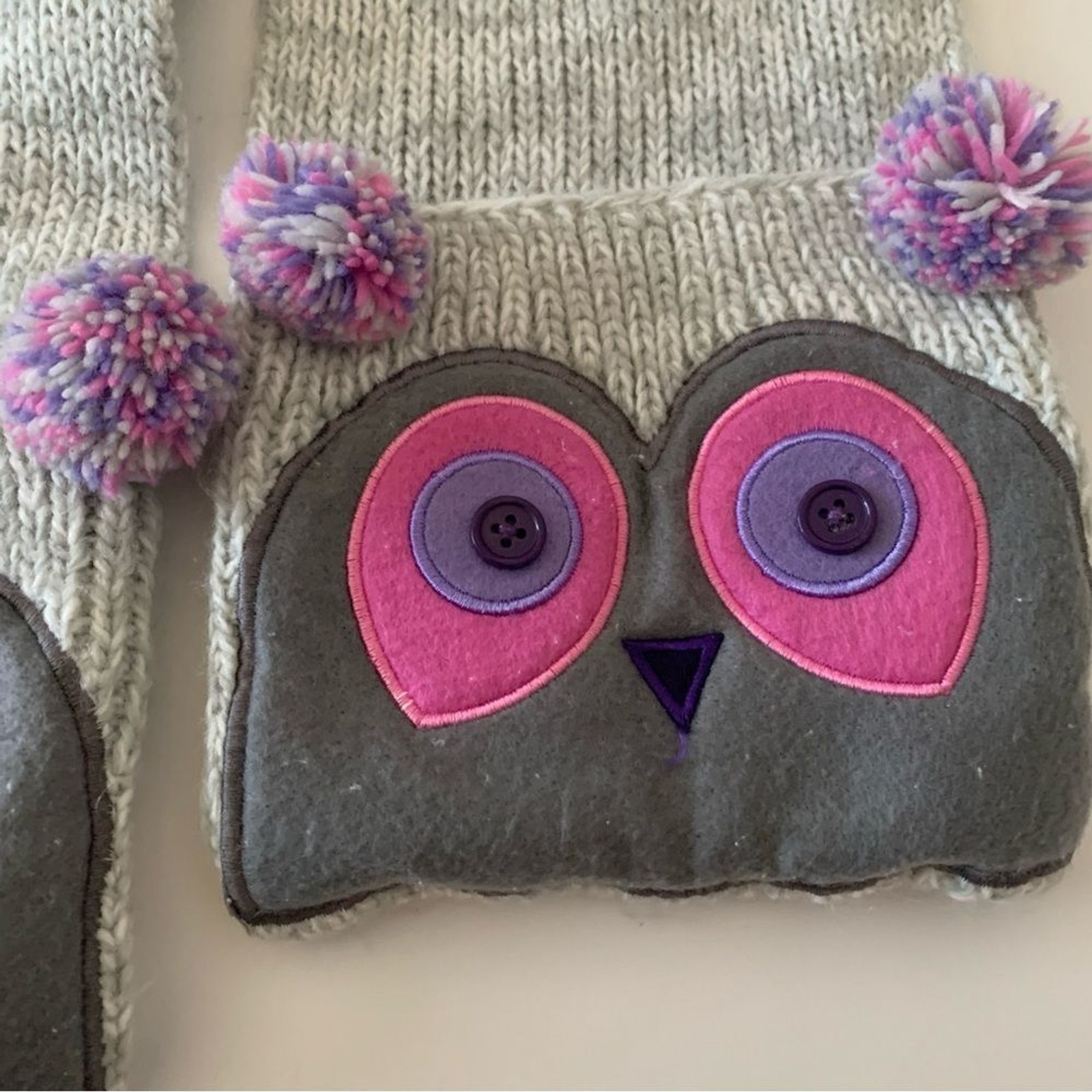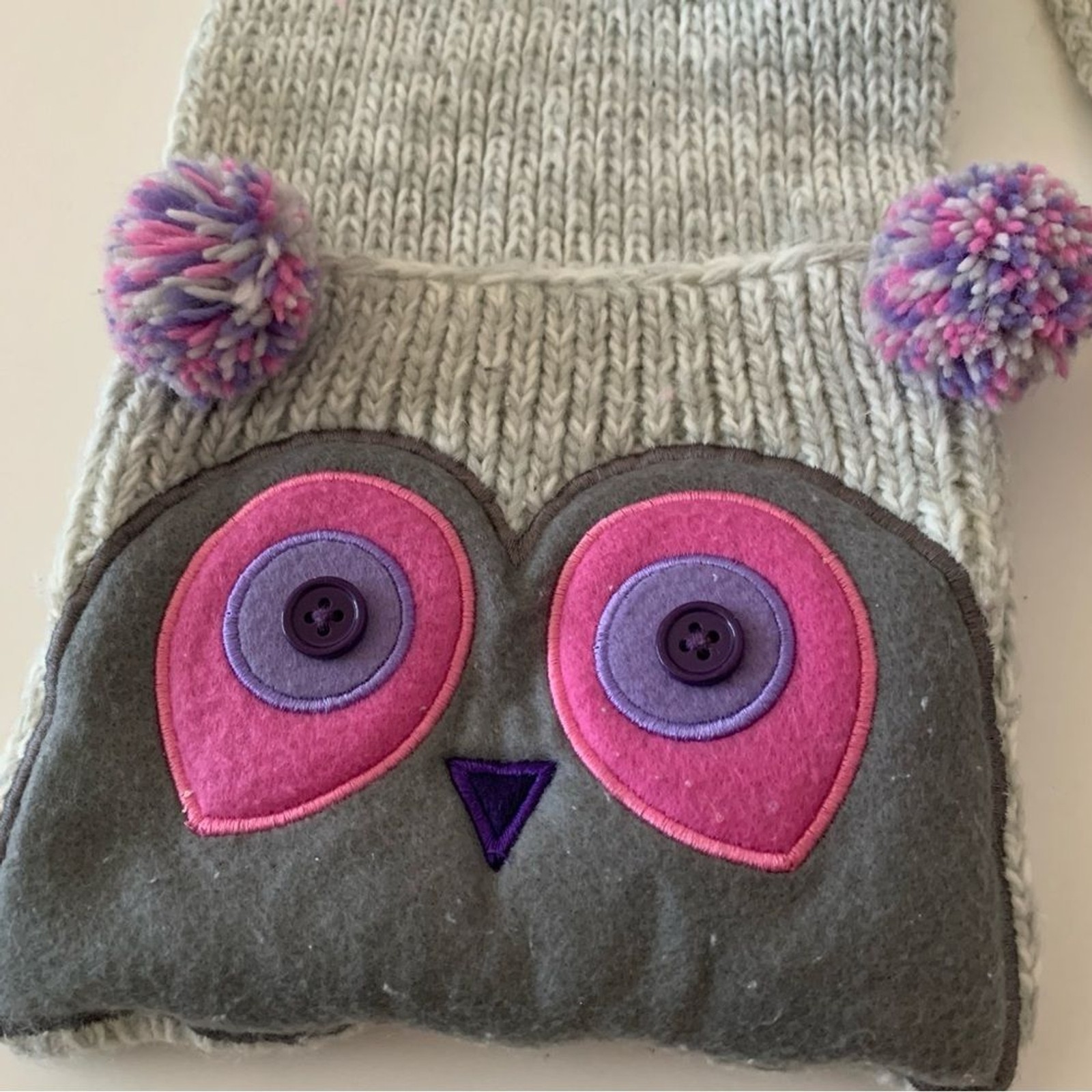 как выглядит Kids Knit Owl Beanie Hat With Matching Pocket Scarf Size 4-7 фото
