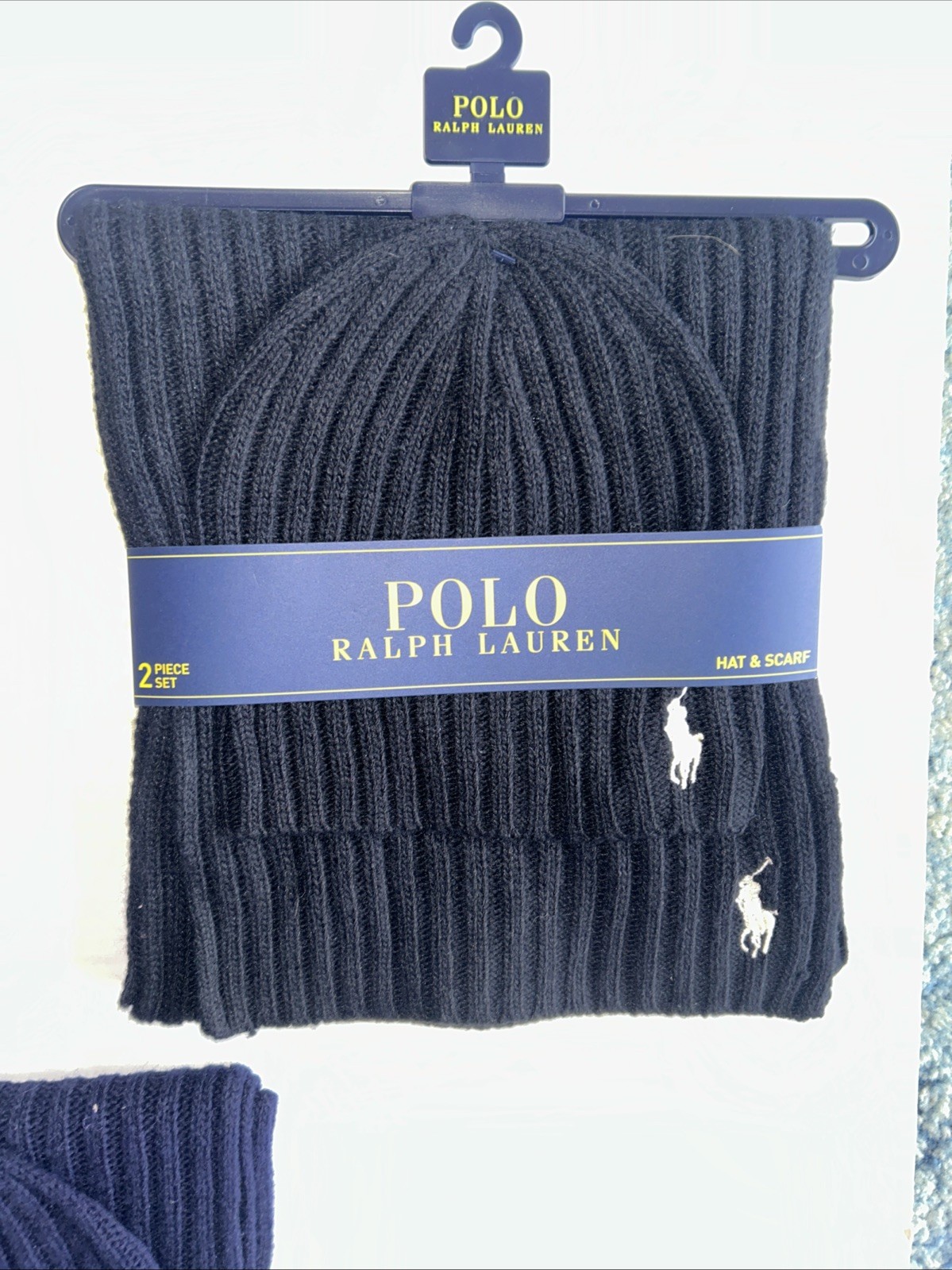 как выглядит Polo Ralph Lauren Wool Blend Ribbed Scarf Beanie Hat Set фото