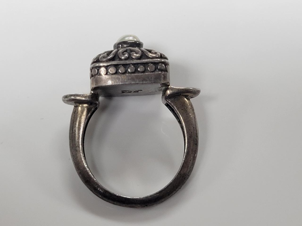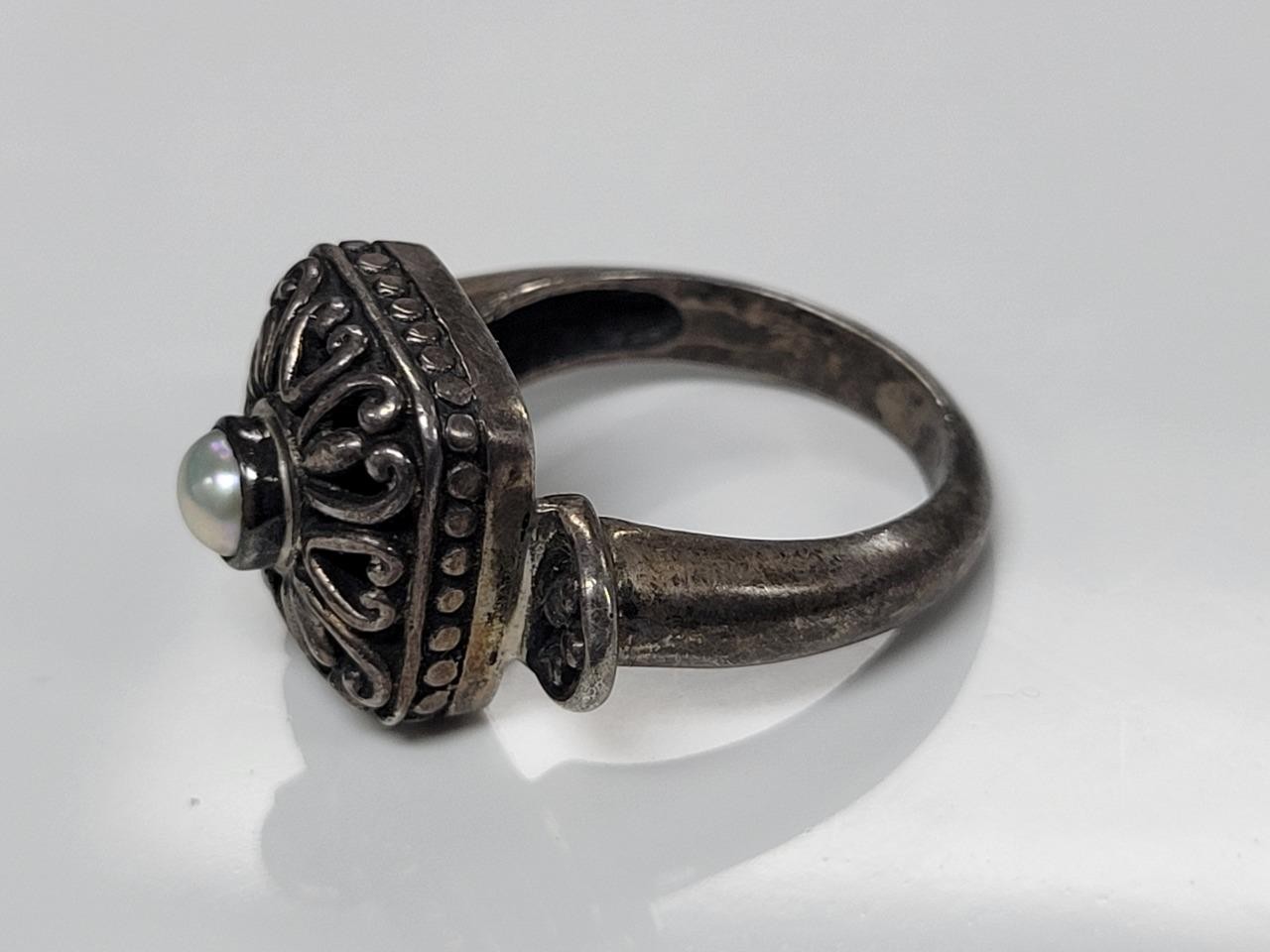 как выглядит Vintage Sterling Silver Pearl Ring w/ Ornate Style Band Sz 5.75 7.3g 1-A134 фото
