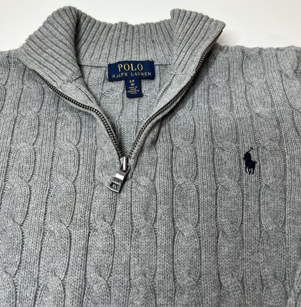 Polo Ralph Lauren Boys 8 Gray Cable Knit Cotton Quarter Zip Sweater Old Money
