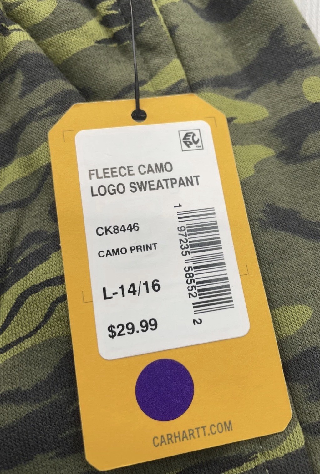 Carhartt Fleece camo green sweatpants pockets adjustable waistband boy L 14/16