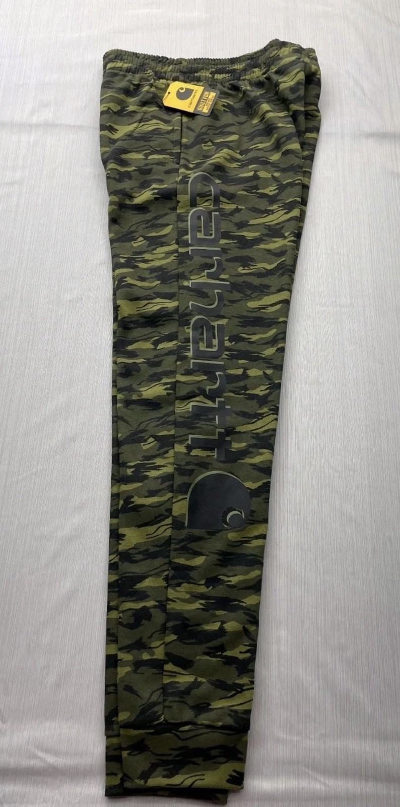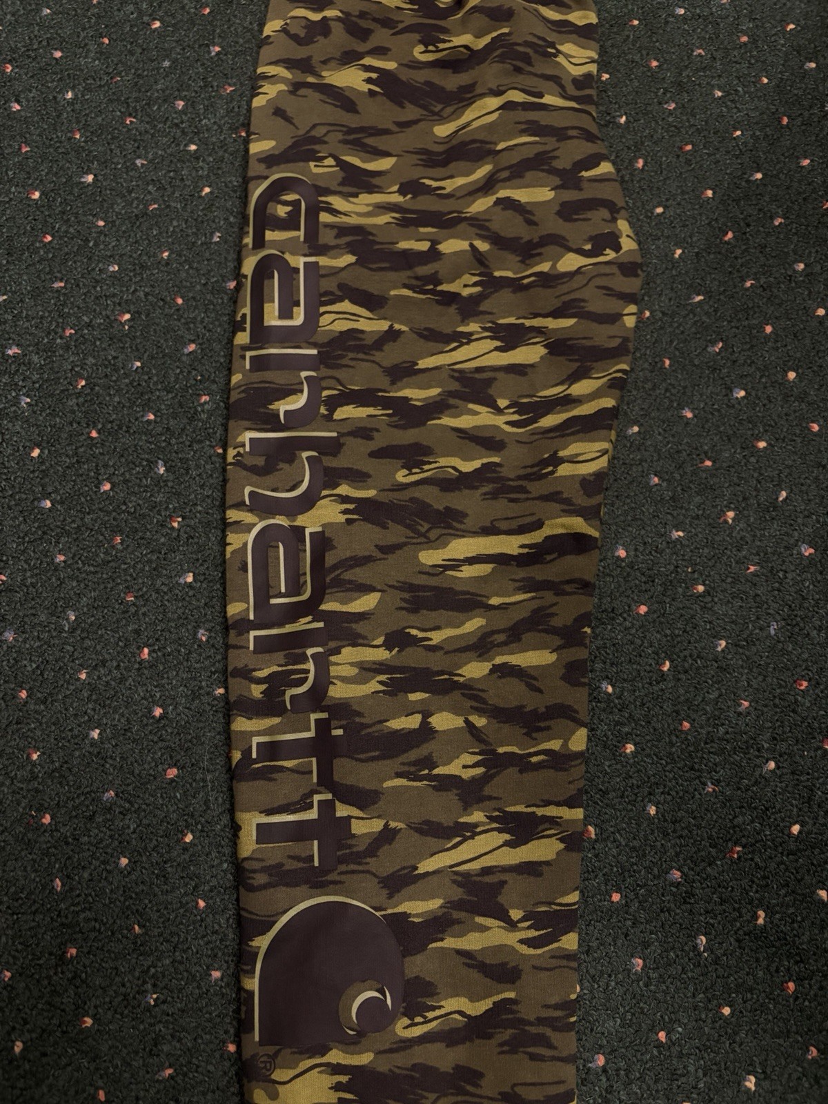 как выглядит Carhartt Fleece camo green sweatpants pockets adjustable waistband boy L 14/16 фото