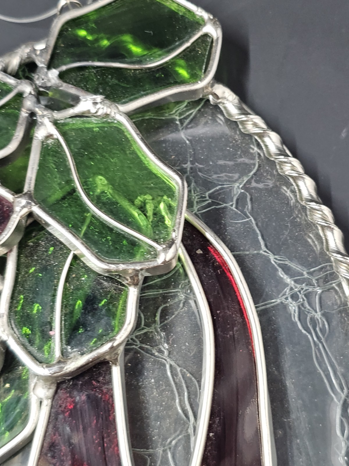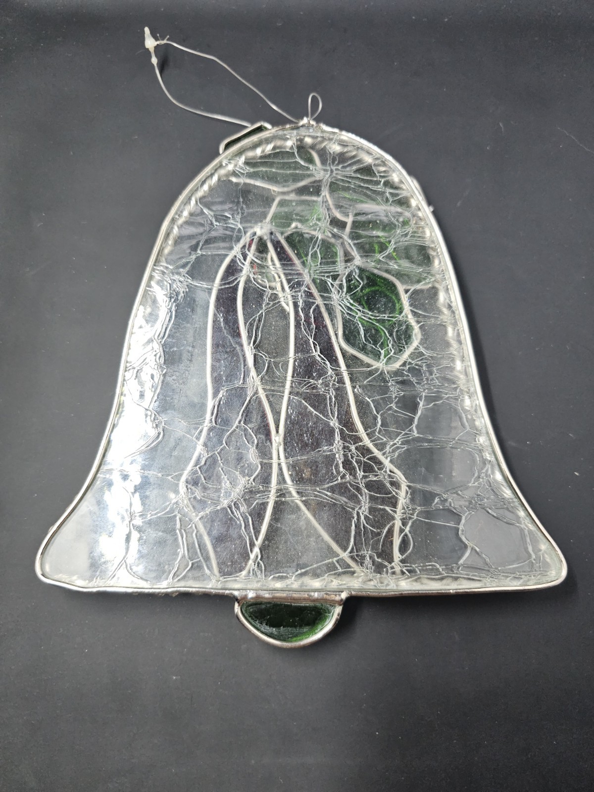 Stained Glass Christmas Bell Poinsettia Hanging Decoration , 7.5x6.5