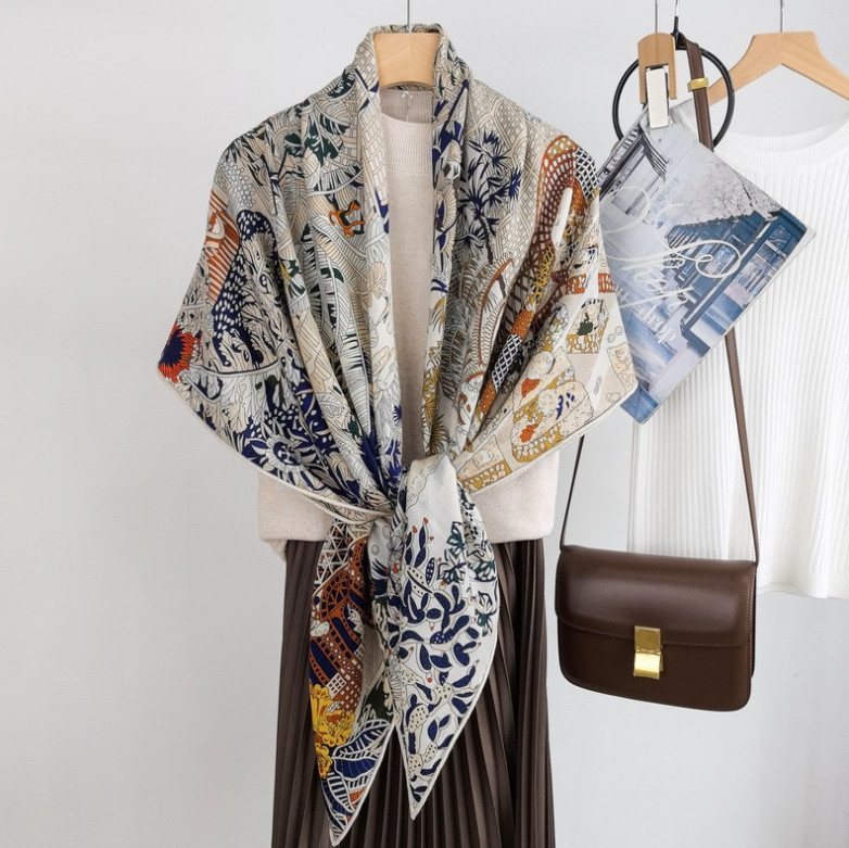70 Cashmere 30 Silk Green heaven Print 135X135cm Scarf Double Face Wrap Shawl