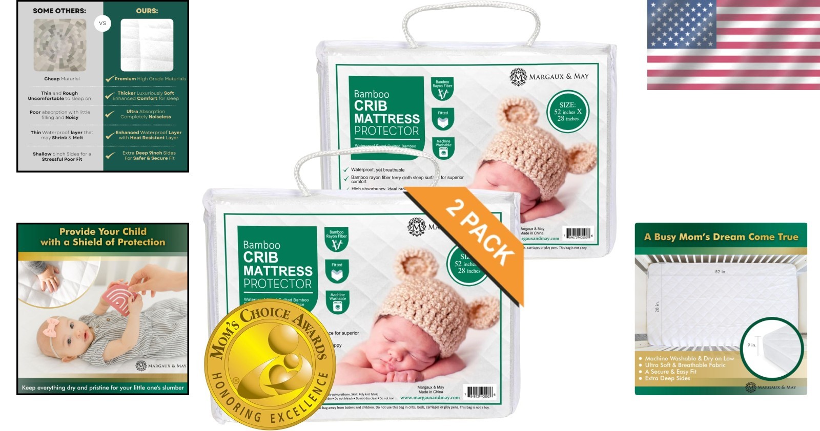 Crib Mattress Protector 2-Pack: Ultra-Soft Waterproof Bamboo Rayon, Oeko-TEX ...