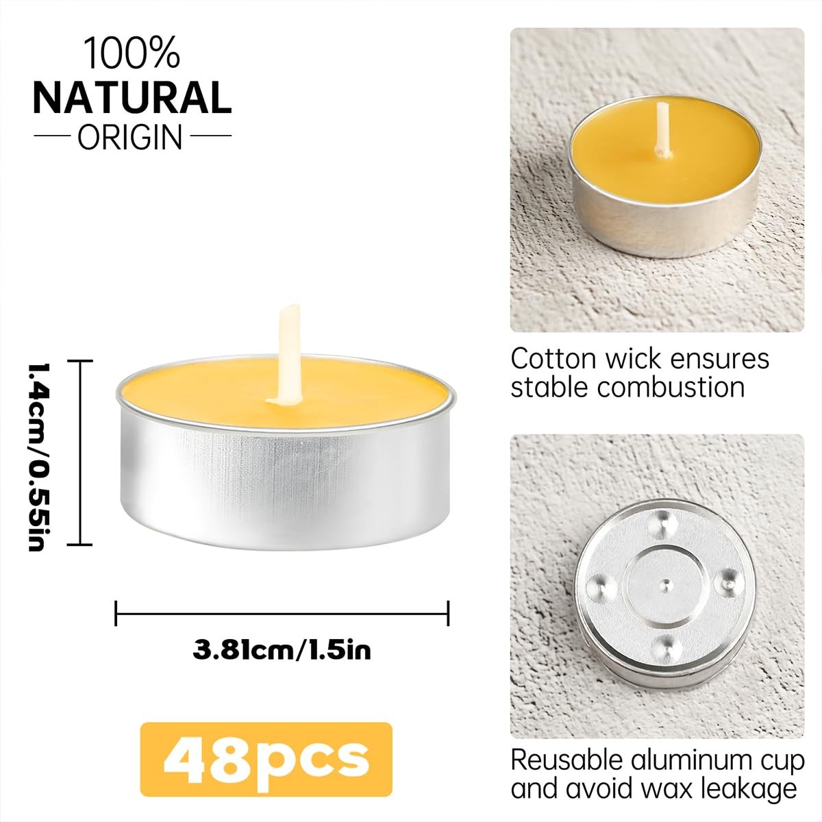 48 Pack Beeswax Tea Candles in Aluminum Cup, 4 Hours Burn Time, Natural Beesw...