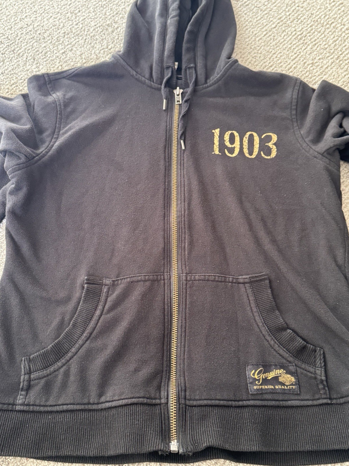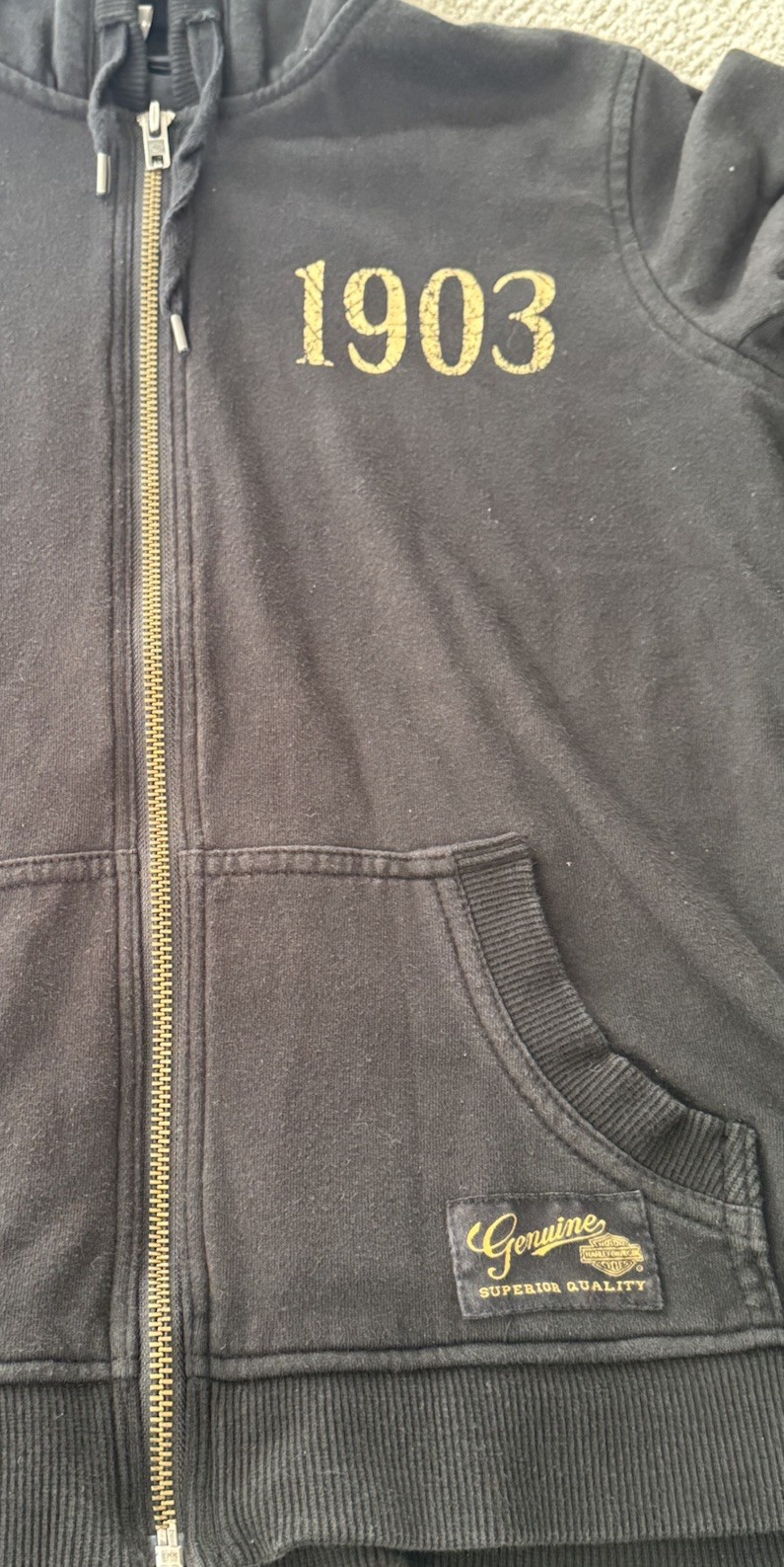как выглядит Harley Davidson Vintage Y2K Full Zip Blk 1903 Gold Logo Sweatshirt 100 COTTON фото