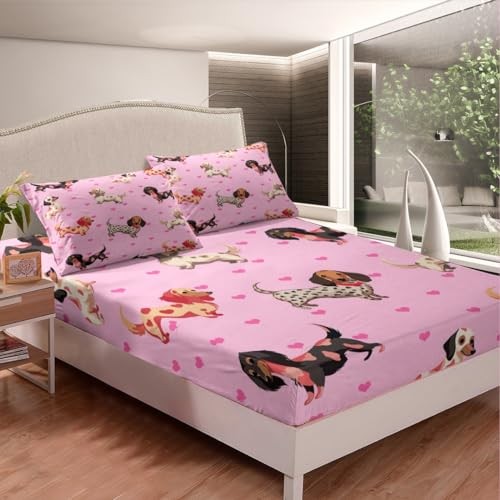 Sausage Dog Fitted Sheet Size Kids Dachshund Bedding Set for Queen Multi 11
