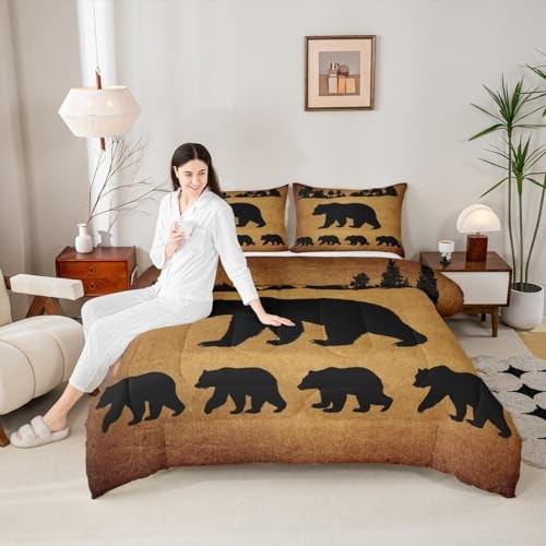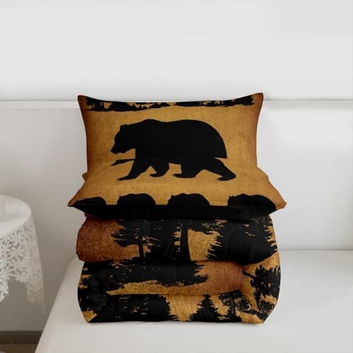 Black Bear Bedding for Boys Girls Kids, Woodland Animal Comforter Twin Multi 11