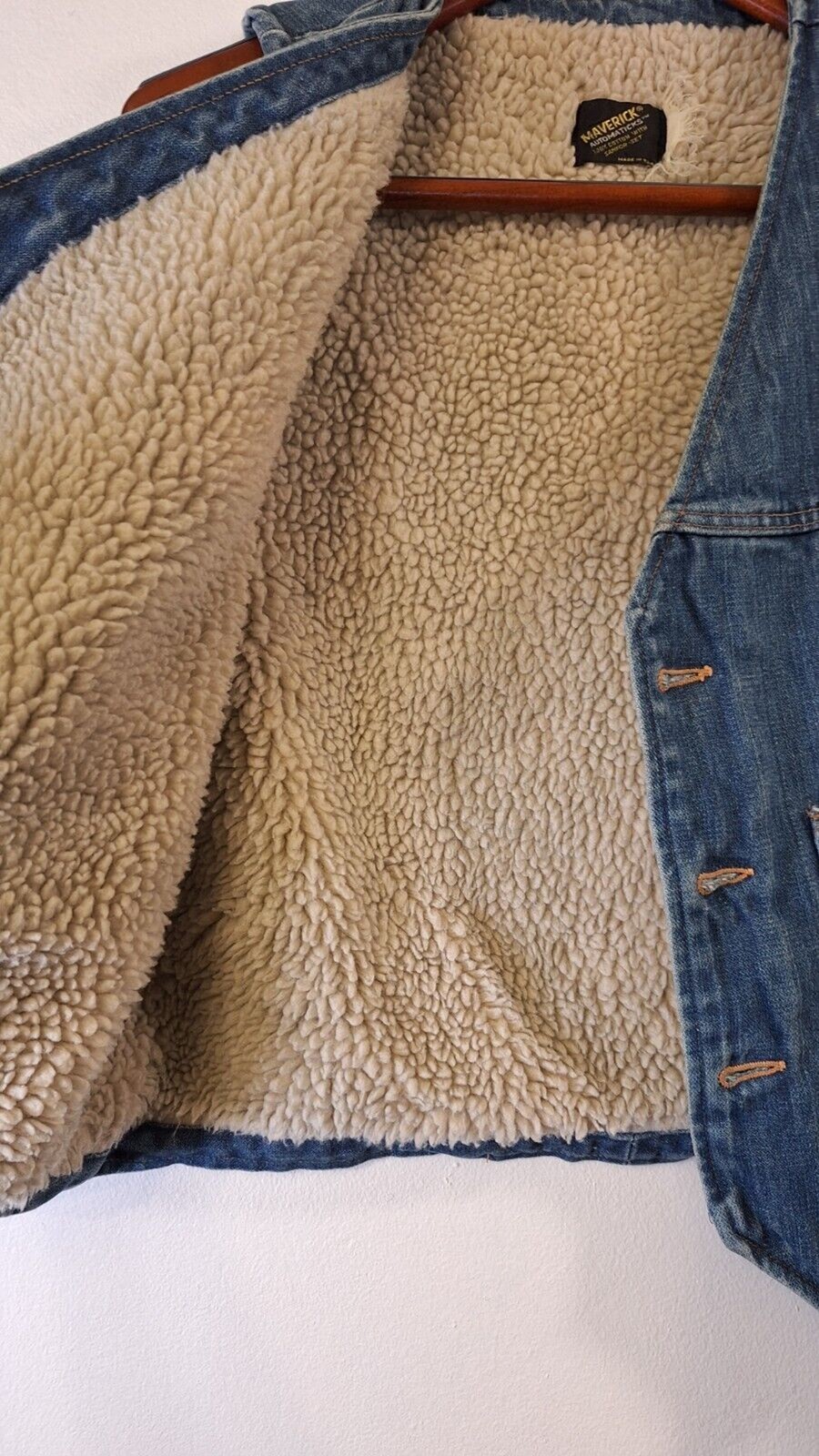 как выглядит Vtg 90s MAVERICK AUTOMATICS Denim Vest Mens M Sherpa Lined Western Cowboy Grunge фото