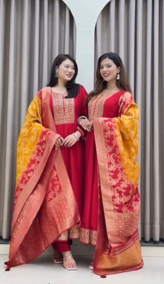 Fully Readymade Anarkali Kurta Pant With Dupatta Set 3 Piece Combo For Partywear