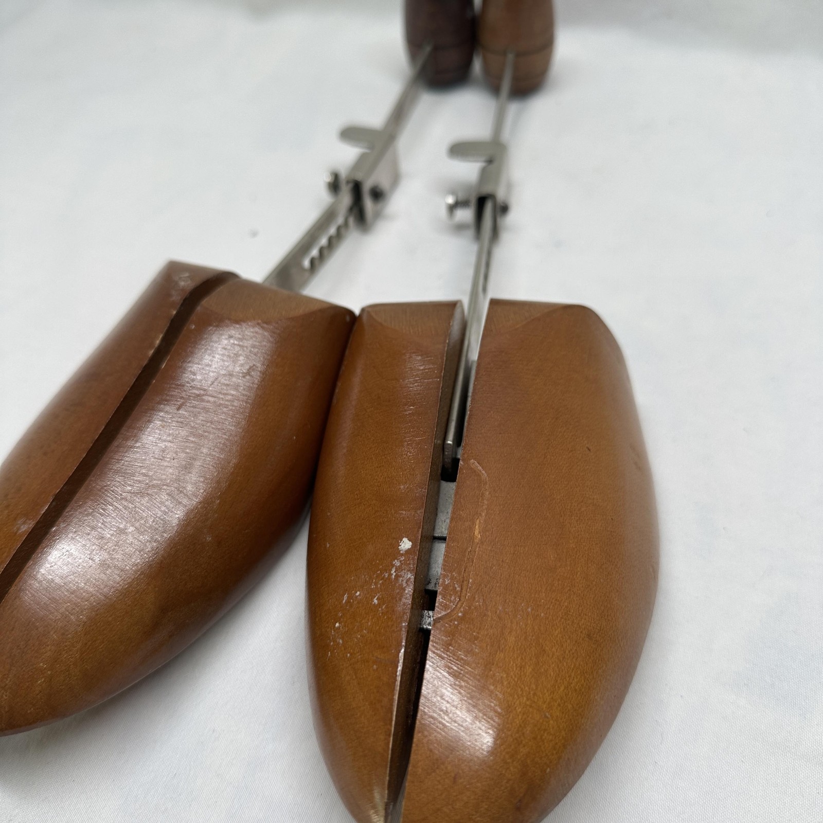 Freeman Shoe Trees Pair Adjustable Split Toe Metal Rod Wooden Brown Mens Spring
