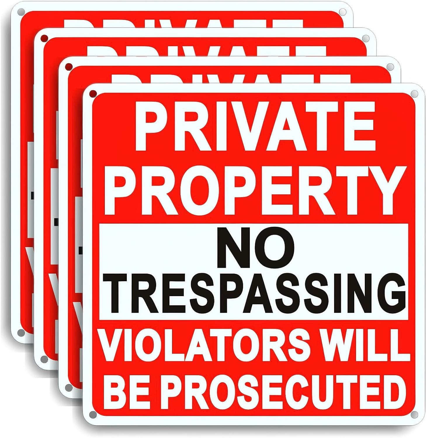 4 Pack Large No Trespassing Signs Private Property, 9.5 Inch X 9.5 Inch Private