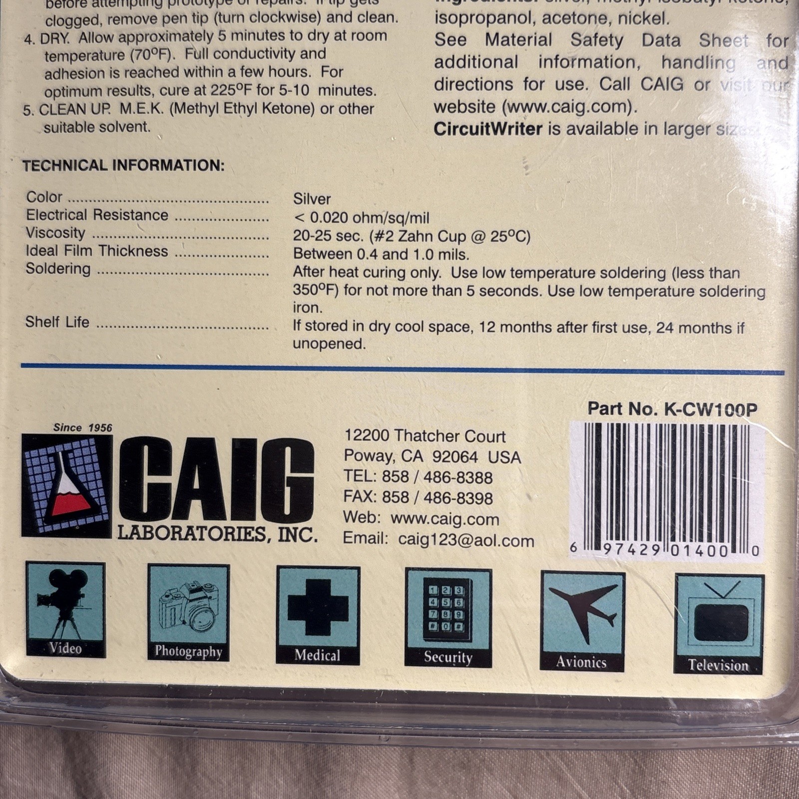 NIB CircuitWriter Conductive Pen Silver Ink, Trace, Repair, CAIG Labs, CW100P